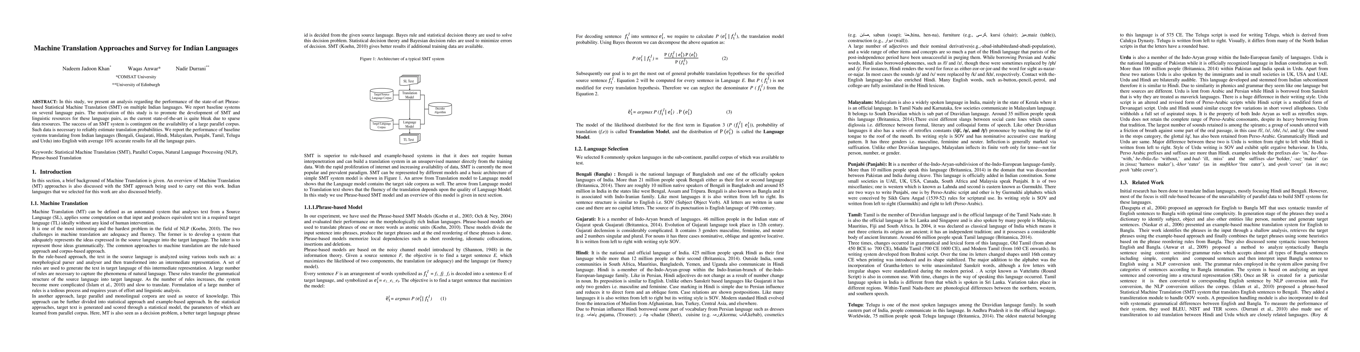This study analyzes the performance of Phrase-based Statistical Machine Translation (SMT) on various Indian languages, reporting baseline systems for multiple language pairs. Despite achieving average 10% accuracy, the study highlights the need for more linguistic resources and parallel corpora to improve SMT for these languages.