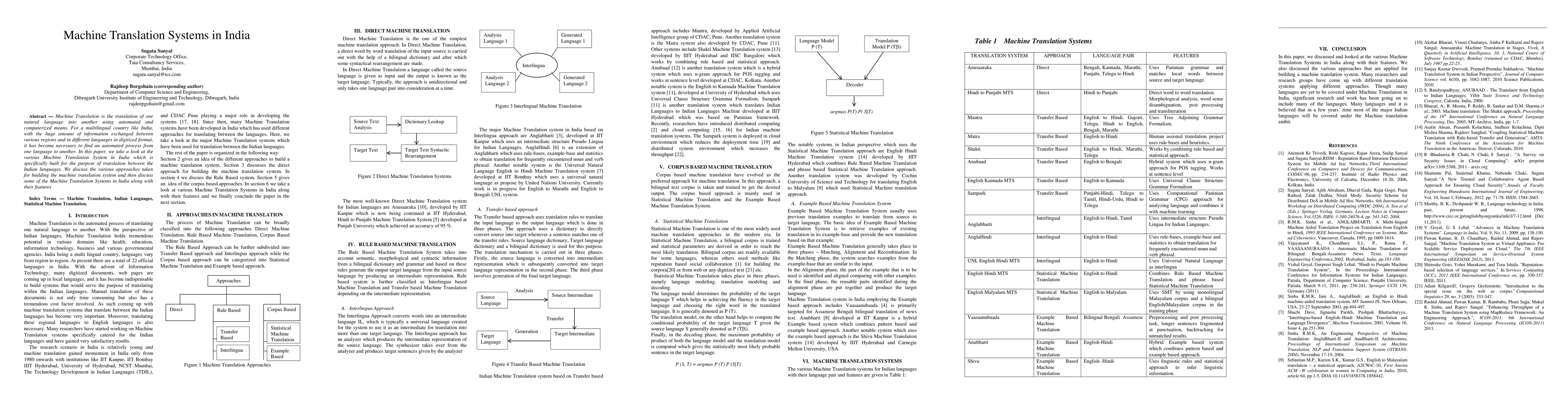 This paper examines machine translation systems in India, focusing on automated translation between Indian languages. It discusses the various approaches used and highlights specific systems along with their features.