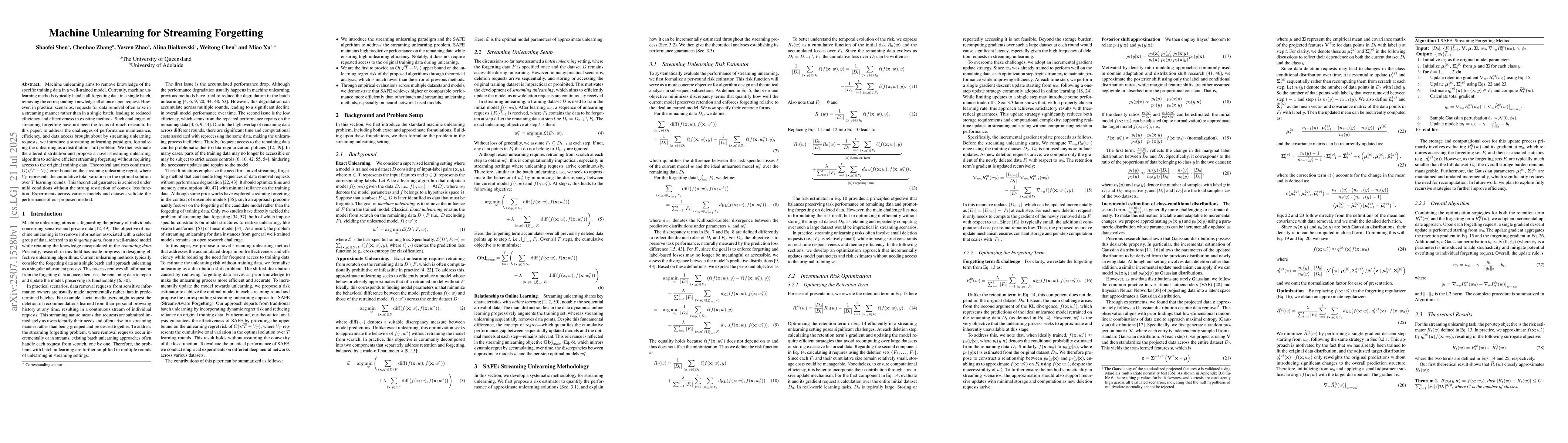The paper introduces a streaming unlearning paradigm to address the challenges of performance maintenance, efficiency, and data access in streaming unlearning requests. It formalizes unlearning as a distribution shift problem, estimates the altered distribution, and proposes a novel streaming unlearning algorithm without requiring access to the original training data.