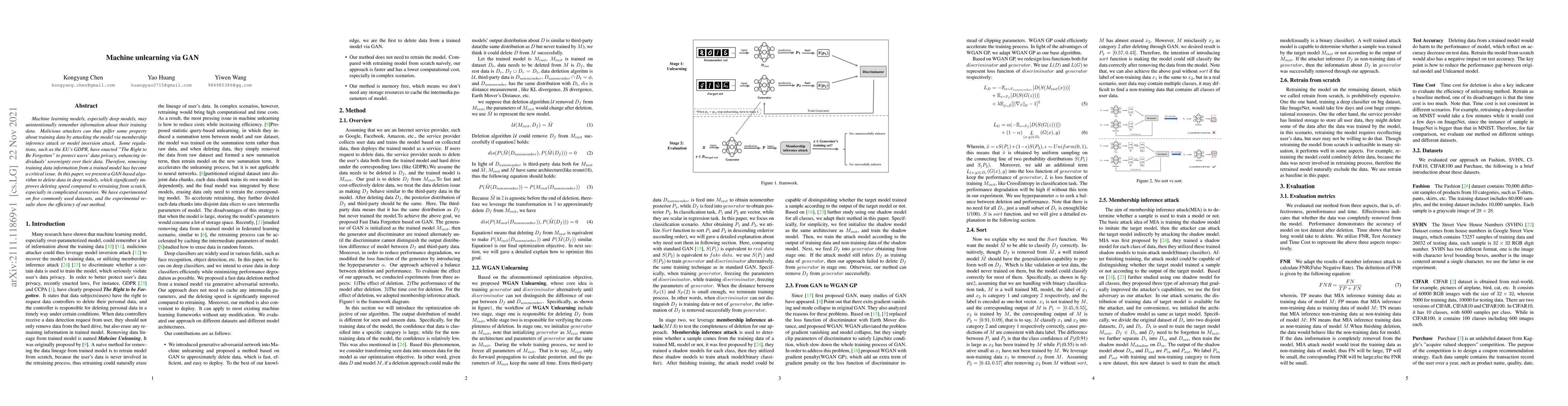 This paper introduces a GAN-based method to efficiently remove training data information from deep models, addressing privacy concerns like GDPR's 'Right to Be Forgotten'. Experiments on five datasets demonstrate the method's effectiveness and speed compared to retraining from scratch.