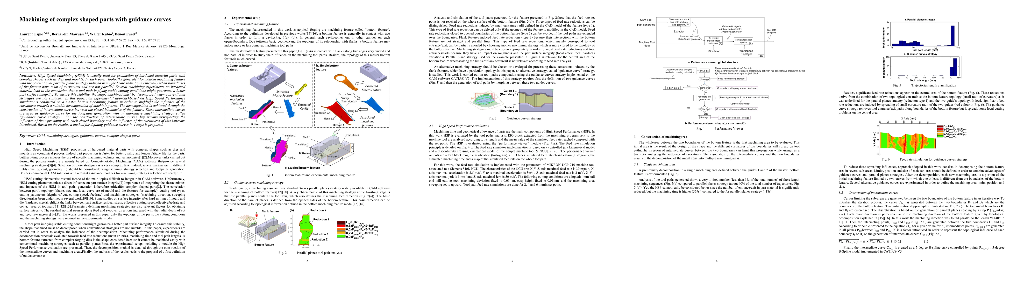 This paper explores an alternative "guidance curve strategy" for high-speed machining of complex-shaped parts, proposing a method to decompose machining areas using intermediate curves for stable cutting conditions, leading to improved surface integrity. The strategy aims to reduce feed rate reductions by generating tool paths that follow these guidance curves.