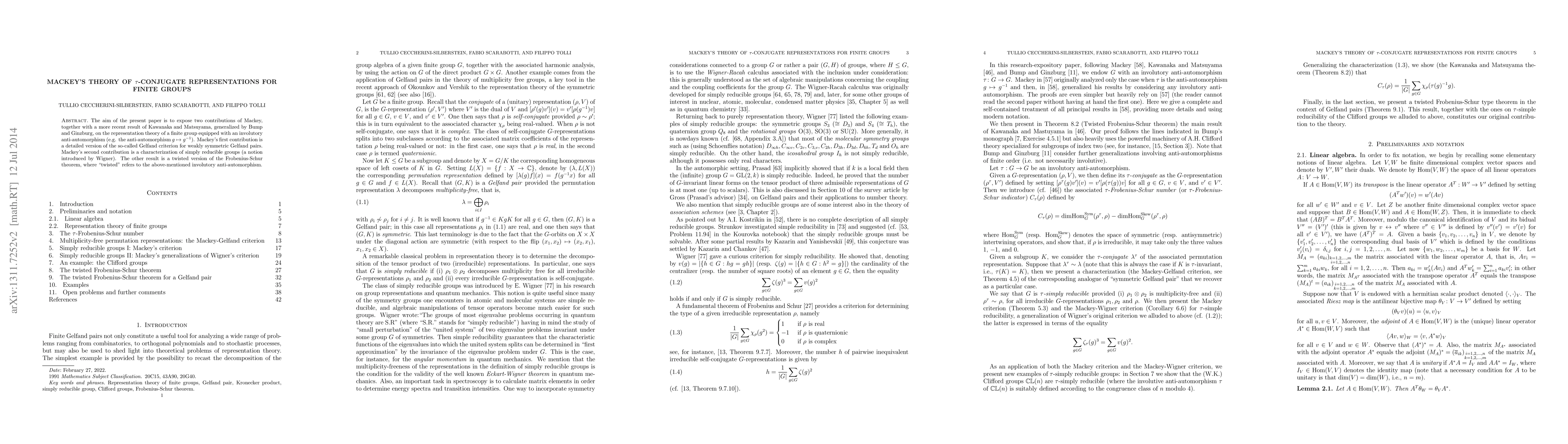 This paper discusses Mackey's contributions to the representation theory of finite groups, particularly his Gelfand criterion for weakly symmetric Gelfand pairs and his characterization of simply reducible groups. It also explores a generalized result on twisted Frobenius-Schur theorem and an appendix examining the Condition ($\bigstar$) for groups and their automorphisms.