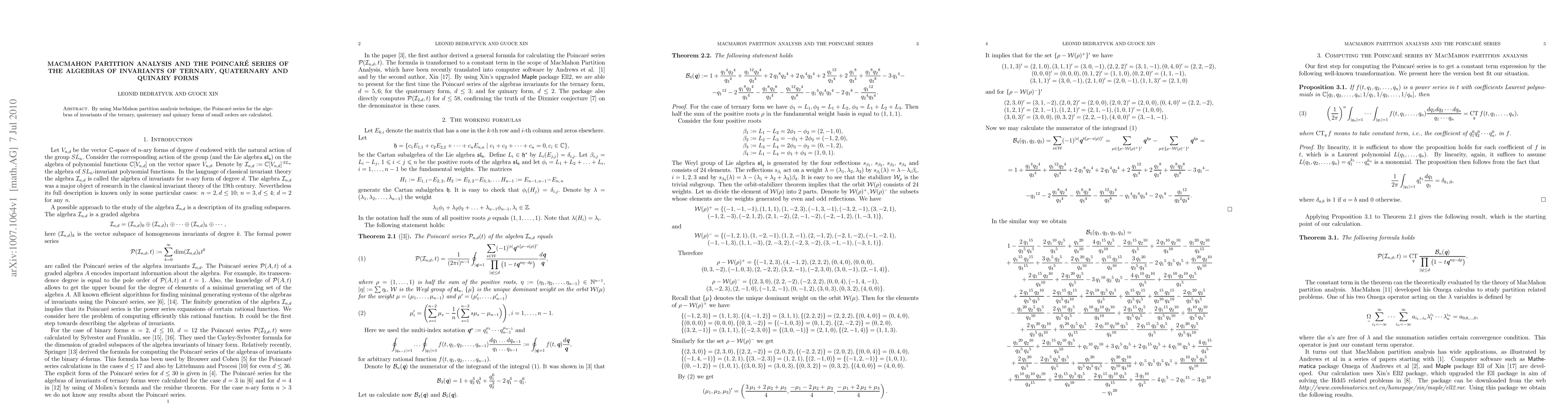 By using MacMahon partition analysis technique, the Poincar\'e series for the algebras of invariants of the ternary, quaternary and quinary forms of small orders are calculated.