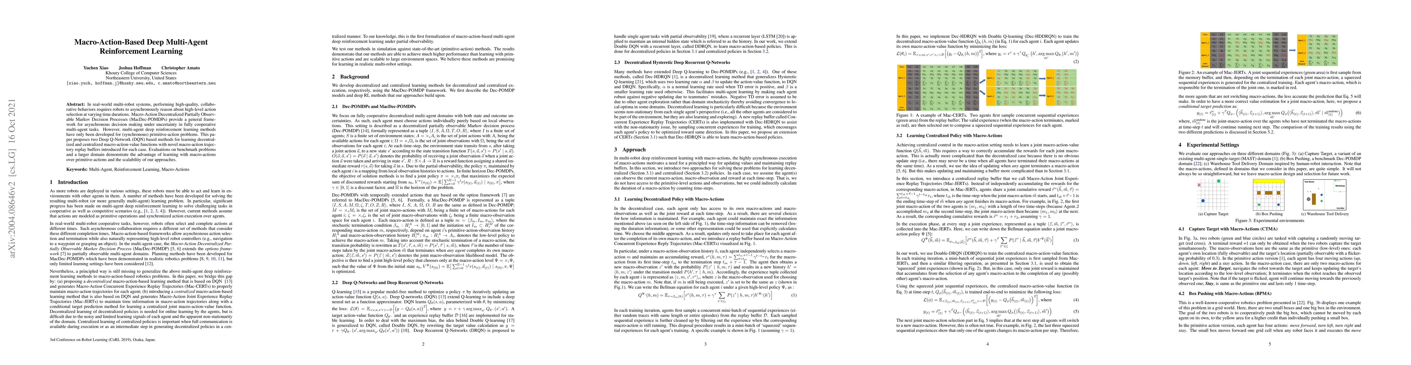 This paper introduces two DQN-based methods for decentralized and centralized reinforcement learning using macro-actions in multi-agent systems, addressing asynchronous decision making. The proposed macro-action trajectory replay buffers improve learning efficiency and scalability, demonstrating advantages over primitive-action methods in benchmark problems.