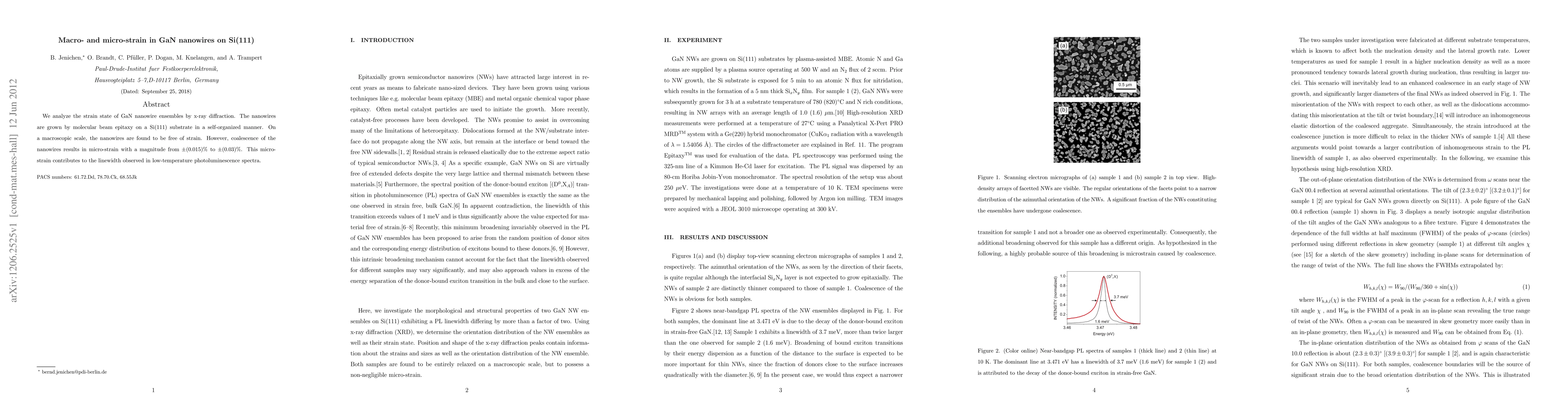 The research presents a detailed analysis of strain in GaN nanowires using high-resolution XRD, providing insights into the relationship between micro-strain and photoluminescence linewidth.