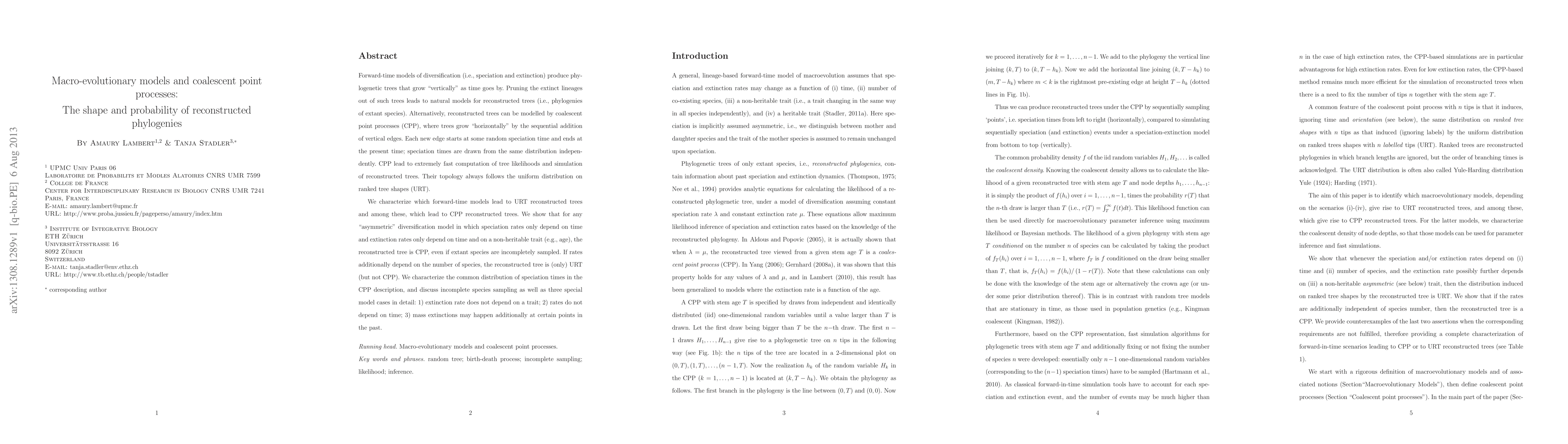 The research employs forward-time macroevolutionary models to analyze speciation and extinction rates, characterizing models that produce Uniform Ranked Trees (URT) and Coalescent Point Processes (CPP) for reconstructed trees.