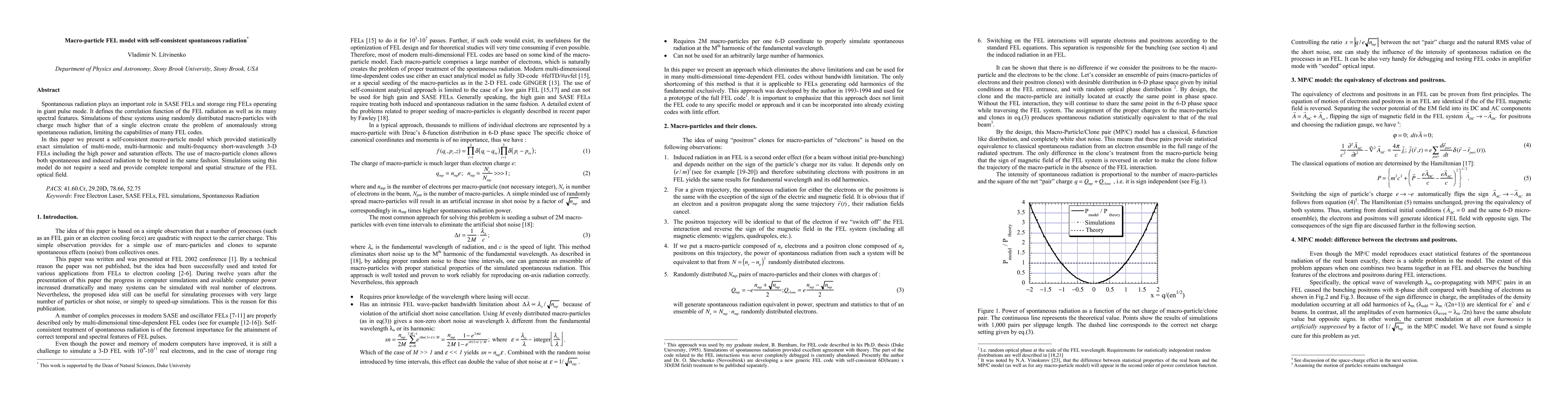 This paper introduces a self-consistent macro-particle model to accurately simulate spontaneous radiation in self-amplified spontaneous emission (SASE) free-electron lasers (FELs) and storage ring FELs. The model addresses the issue of anomalously strong spontaneous radiation in simulations, providing a statistically exact representation of multi-mode, multi-harmonic FELs and their high power and saturation effects.