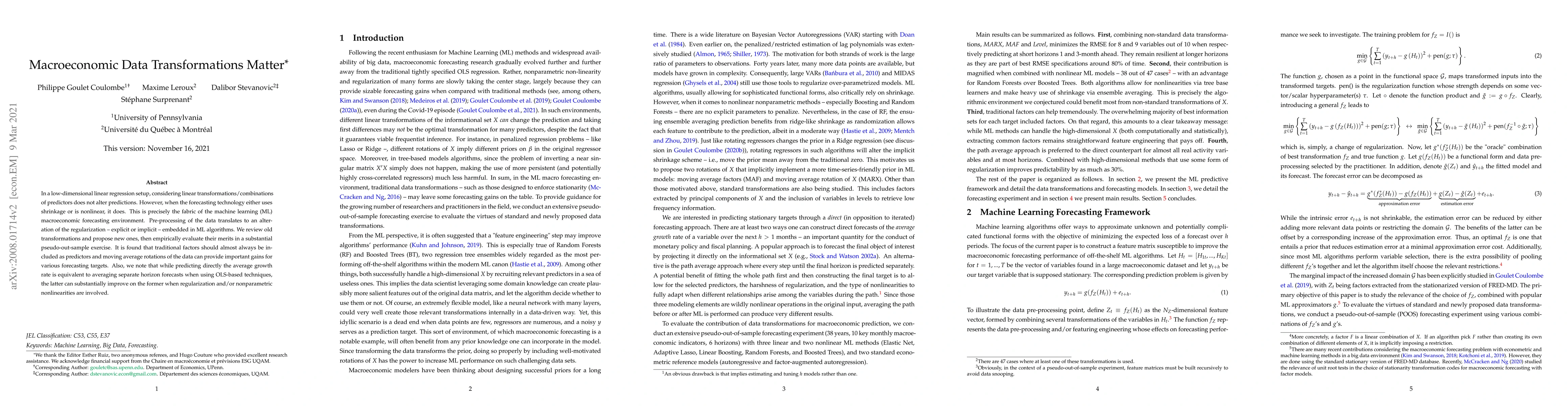 In a low-dimensional linear regression setup, considering linear transformations/combinations of predictors does not alter predictions. However, when the forecasting technology either uses shrinkage or is nonlinear, it does. This is precisely the fabric of the machine learning (ML) macroeconomic forecasting environment. Pre-processing of the data translates to an alteration of the regularization -- explicit or implicit -- embedded in ML algorithms. We review old transformations and propose new ones, then empirically evaluate their merits in a substantial pseudo-out-sample exercise. It is found that traditional factors should almost always be included as predictors and moving average rotations of the data can provide important gains for various forecasting targets. Also, we note that while predicting directly the average growth rate is equivalent to averaging separate horizon forecasts when using OLS-based techniques, the latter can substantially improve on the former when regularization and/or nonparametric nonlinearities are involved.