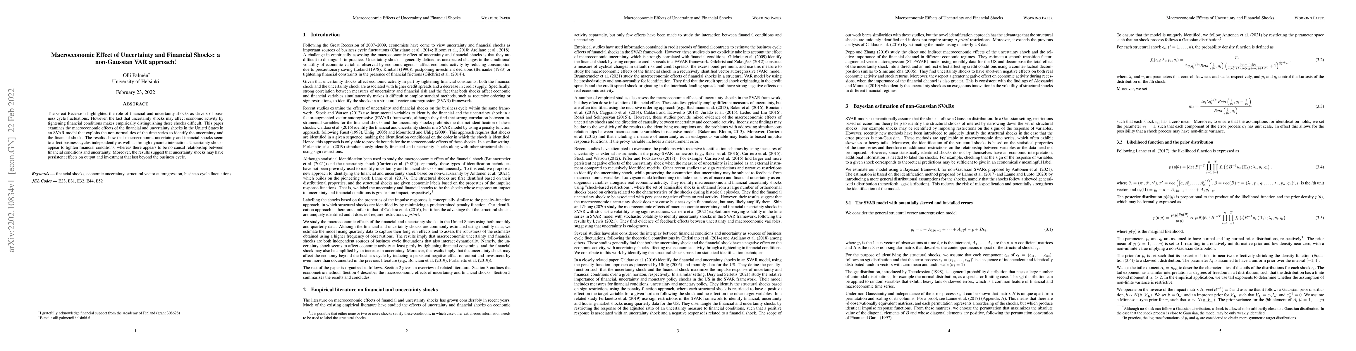 This paper uses a non-Gaussian VAR approach to disentangle the macroeconomic effects of financial and uncertainty shocks in the U.S., finding that they impact business cycles independently and through dynamic interaction, with uncertainty shocks tightening financial conditions. The results suggest persistent effects of uncertainty shocks on output and investment beyond the business cycle.
