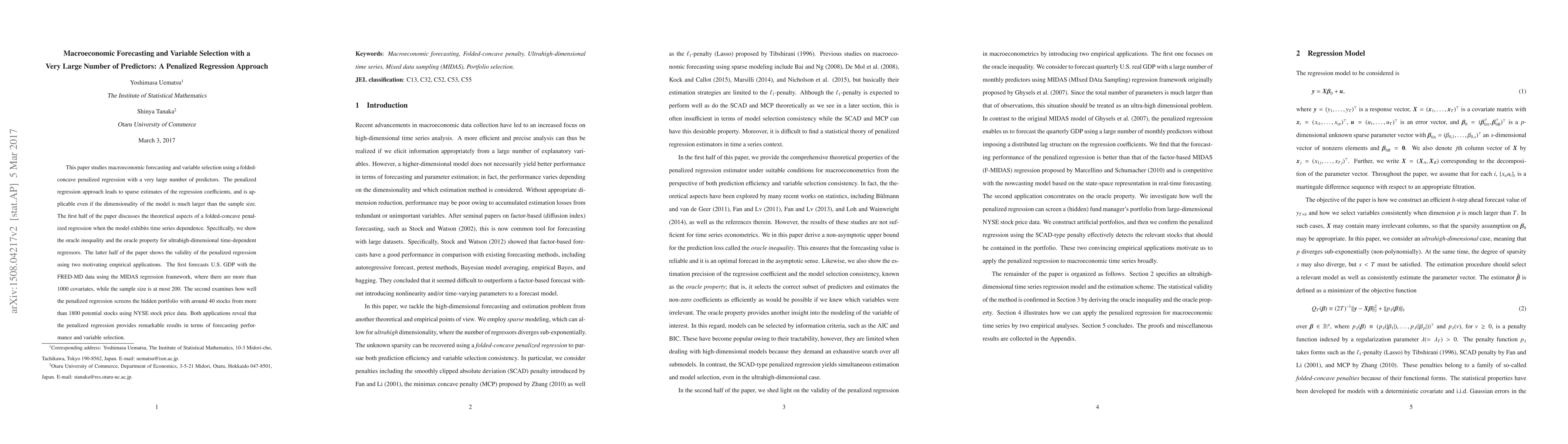 This paper explores macroeconomic forecasting and variable selection using a folded-concave penalized regression approach for models with a very large number of predictors. It demonstrates the method's effectiveness through theoretical analysis and empirical applications, including forecasting U.S. GDP and screening hidden portfolios from vast stock datasets.
