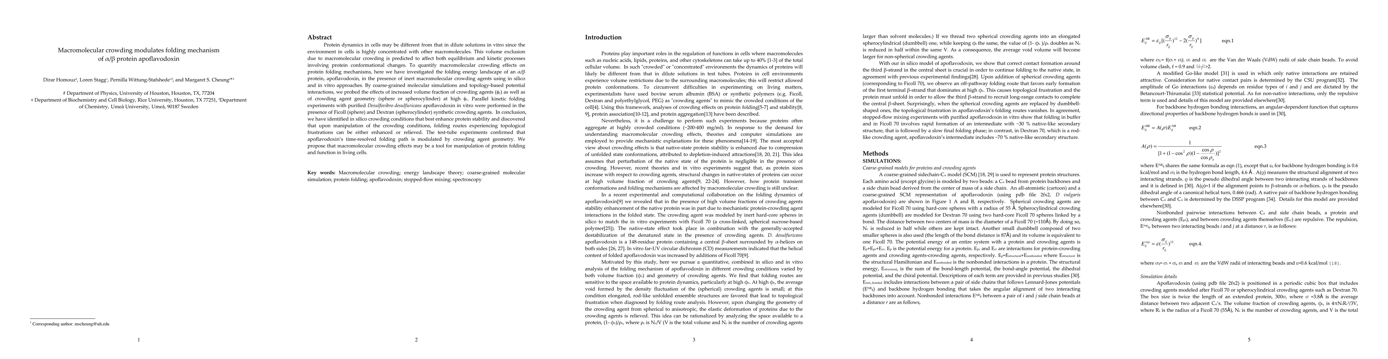 This study investigates how macromolecular crowding affects the folding mechanism of alpha/beta protein apoflavodoxin using both in silico and in vitro approaches. Results show that crowding conditions can modulate folding routes and stability, suggesting potential for manipulating protein folding and function in cellular environments.