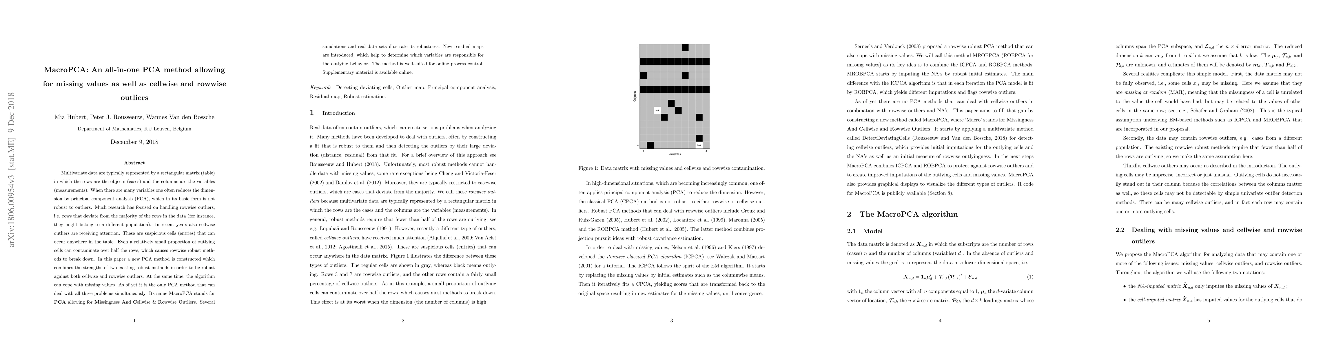 MacroPCA is a novel PCA method robust to both cellwise and rowwise outliers, as well as missing values, addressing a gap in existing robust PCA techniques. It introduces new residual maps to identify variables responsible for outlier behavior, making it ideal for online process control.