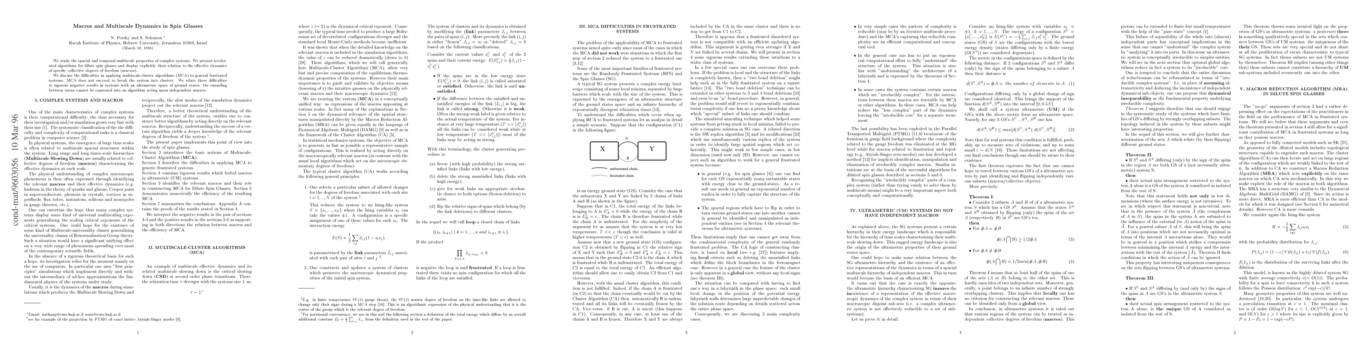 We study the spacial and temporal multiscale properties of complex systems. We present accelerated algorithms for dilute spin glasses and display explicitly their relation to the effective dynamics of specific collective degrees of freedom (macros). We discuss the difficulties in applying multiscale-cluster algorithms(MCA) to general frustrated systems: MCA does not succeed to break the system into clusters. We relate these difficulties to rigorous negative results in systems with an ultrametric space of ground states: the tunneling between vacua cannot be expressed into an algorithm acting upon independent macros.