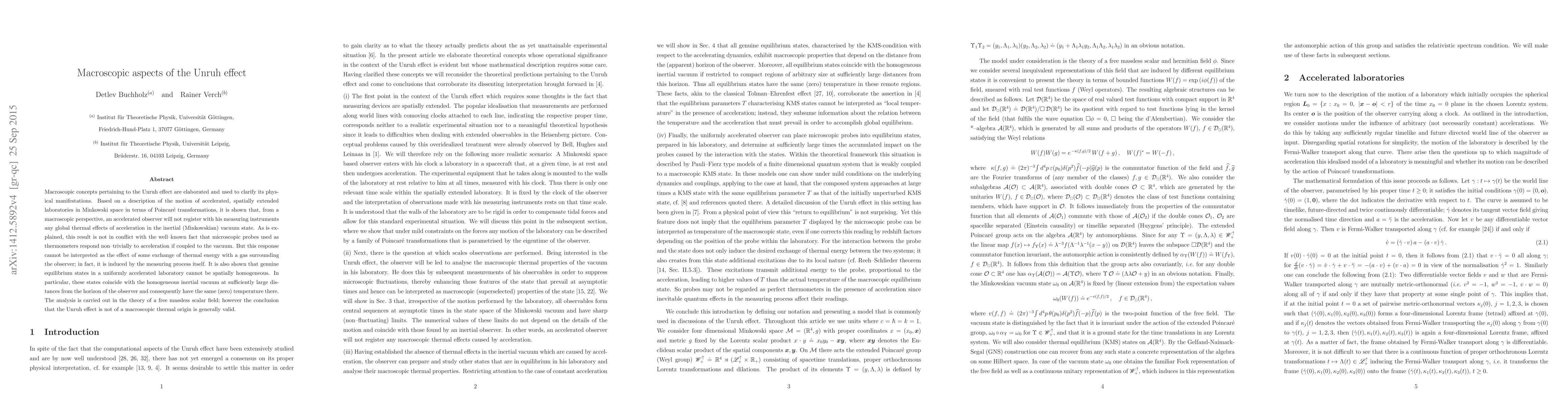 Macroscopic concepts pertaining to the Unruh effect are elaborated and used to clarify its physical manifestations. Based on a description of the motion of accelerated, spatially extended laboratories in Minkowski space in terms of Poincar\'e transformations, it is shown that, from a macroscopic perspective, an accelerated observer will not register with his measuring instruments any global thermal effects of acceleration in the inertial (Minkowskian) vacuum state. As is explained, this result is not in conflict with the well-known fact that microscopic probes respond non-trivially to acceleration if coupled to the vacuum. But this response cannot be interpreted as the effect of some heat bath surrounding the observer. It is also shown that genuine equilibrium states in a uniformly accelerated laboratory cannot be spatially homogeneous. In particular, these states coincide with the homogeneous inertial vacuum at sufficiently large distances from the horizon of the observer and consequently have the same (zero) temperature there. The analysis is carried out in the theory of a free massless scalar field; however the conclusion that the Unruh effect is not of a thermal nature, viz. induced by heat transfer, is generally valid.