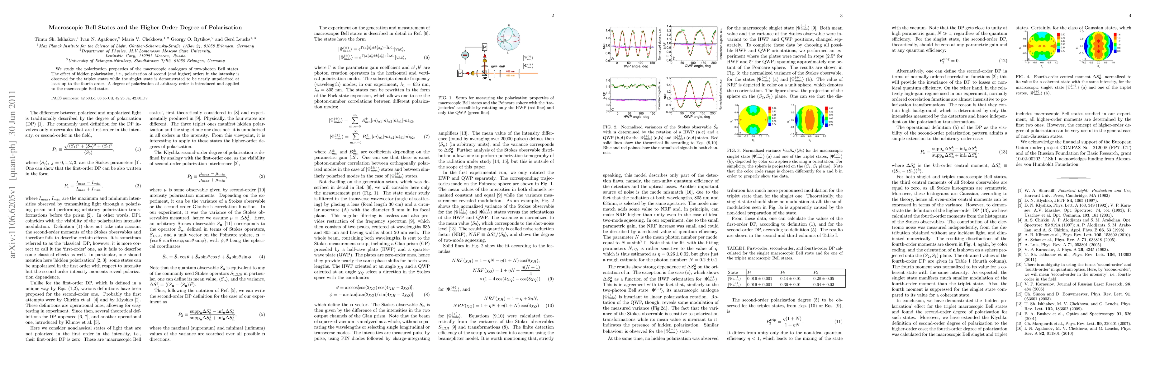 This paper investigates the polarization characteristics of macroscopic versions of two-photon Bell states, revealing hidden polarization effects in triplet states and near-zero polarization in singlet states up to the fourth order. An arbitrary-order degree of polarization is introduced and applied to analyze these macroscopic Bell states.