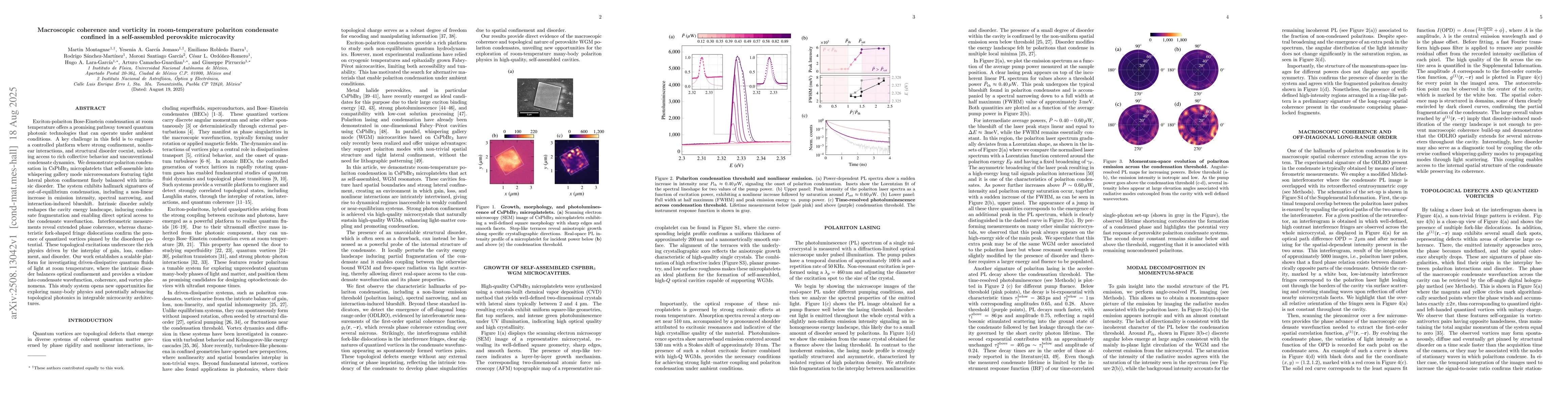 The work distinguishes itself by demonstrating macroscopic coherence and vorticity in a room-temperature polariton condensate confined in a self-assembled perovskite microcavity, providing a unique avenue for exploring quantum photonic technologies under ambient conditions.