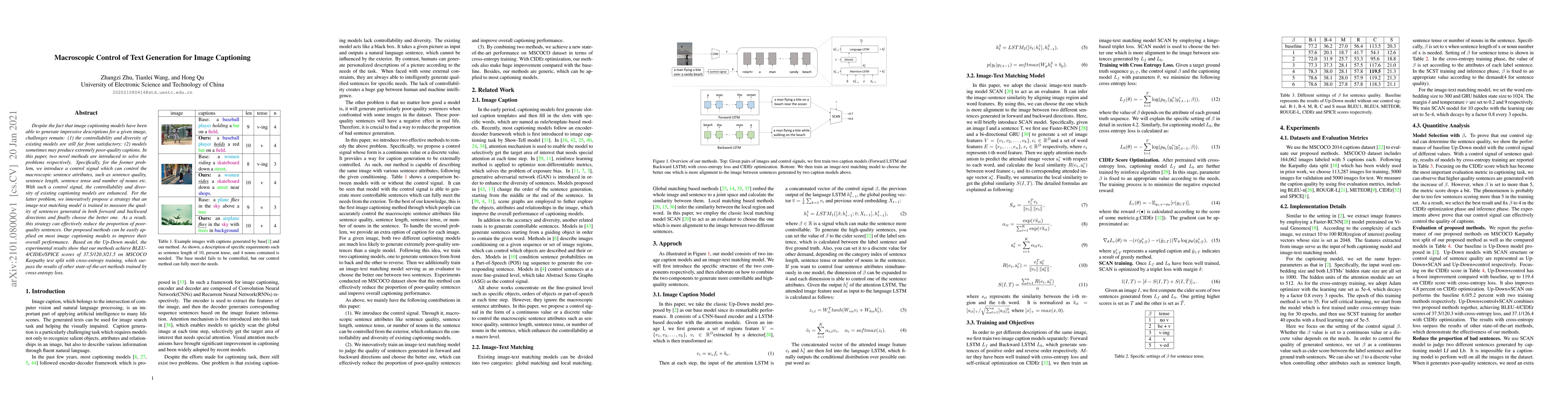 This paper proposes two novel methods to improve image captioning: a control signal for controllability and diversity, and an image-text matching model for reducing poor-quality sentences, achieving state-of-the-art performance.