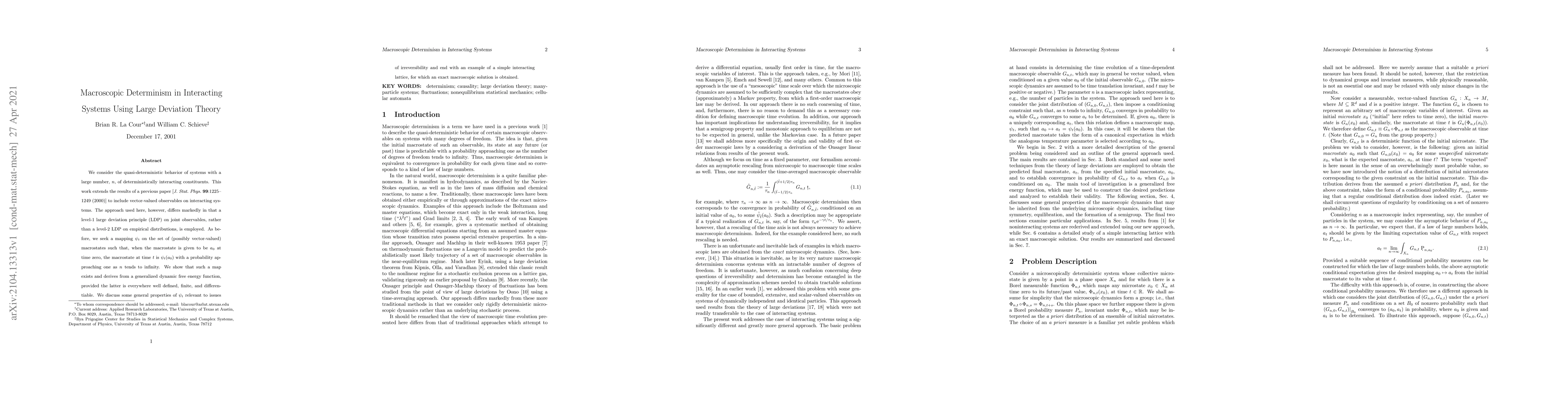 We consider the quasi-deterministic behavior of systems with a large number, $n$, of deterministically interacting constituents. This work extends the results of a previous paper [J. Stat. Phys. 99:1225-1249 (2000)] to include vector-valued observables on interacting systems. The approach used here, however, differs markedly in that a level-1 large deviation principle (LDP) on joint observables, rather than a level-2 LDP on empirical distributions, is employed. As before, we seek a mapping $\psi_{t}$ on the set of (possibly vector-valued) macrostates such that, when the macrostate is given to be $a_0$ at time zero, the macrostate at time $t$ is $\psi_{t}(a_0)$ with a probability approaching one as $n$ tends to infinity. We show that such a map exists and derives from a generalized dynamic free energy function, provided the latter is everywhere well defined, finite, and differentiable. We discuss some general properties of $\psi_{t}$ relevant to issues of irreversibility and end with an example of a simple interacting lattice, for which an exact macroscopic solution is obtained.