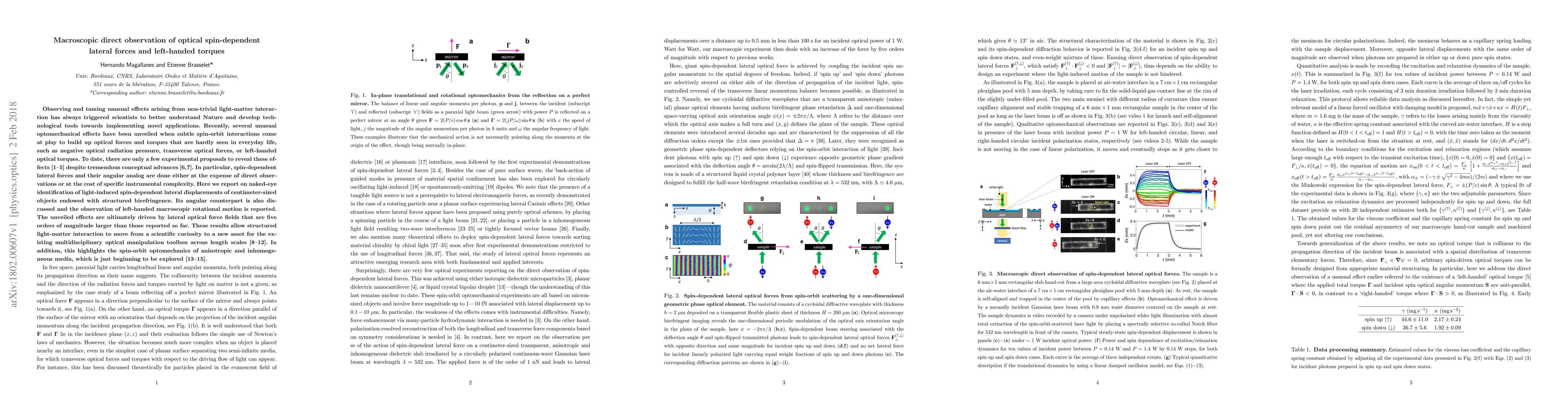 This paper reports the first macroscopic, direct observation of optical spin-dependent lateral forces and left-handed torques using structured birefringence, demonstrating significant lateral optical force fields and enabling new applications in optomechanics. The findings advance the understanding of spin-orbit interactions in light-matter interactions.