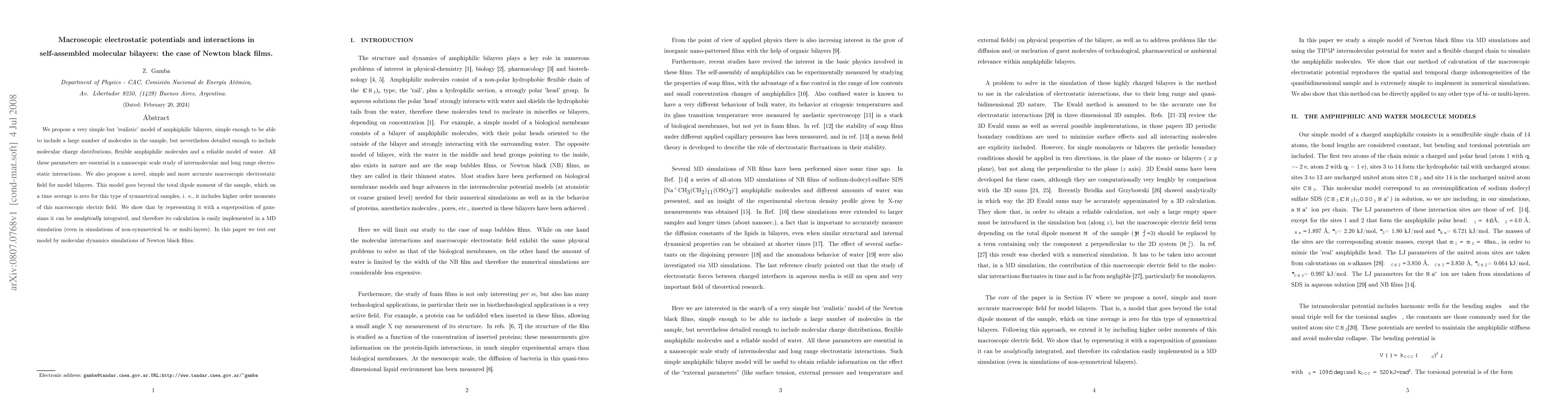 Researchers developed a new model to study electrostatic interactions in self-assembled molecular bilayers, known as Newton black films. The model accurately predicts macroscopic electrostatic fields, enabling better understanding of long-range interactions at the nanoscale.