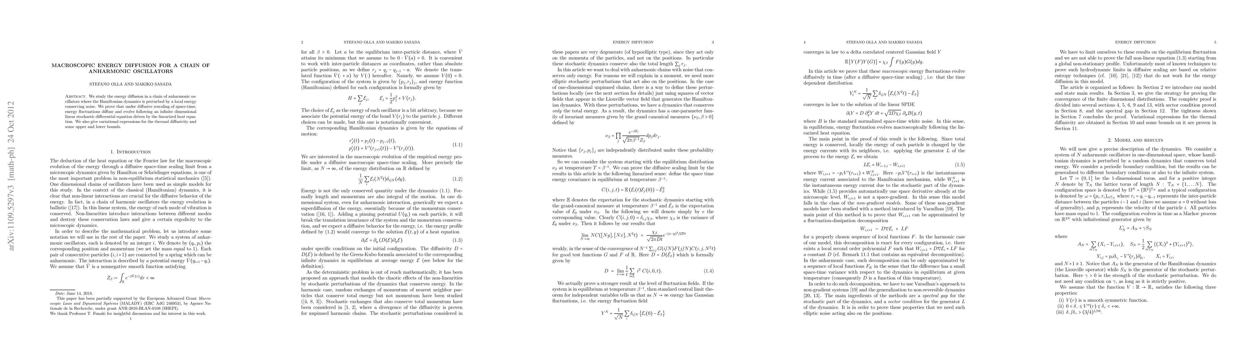 This paper investigates energy diffusion in a chain of anharmonic oscillators under local noise, demonstrating that energy fluctuations follow an infinite-dimensional linear stochastic differential equation. It provides variational expressions for thermal diffusivity and establishes bounds for the process.