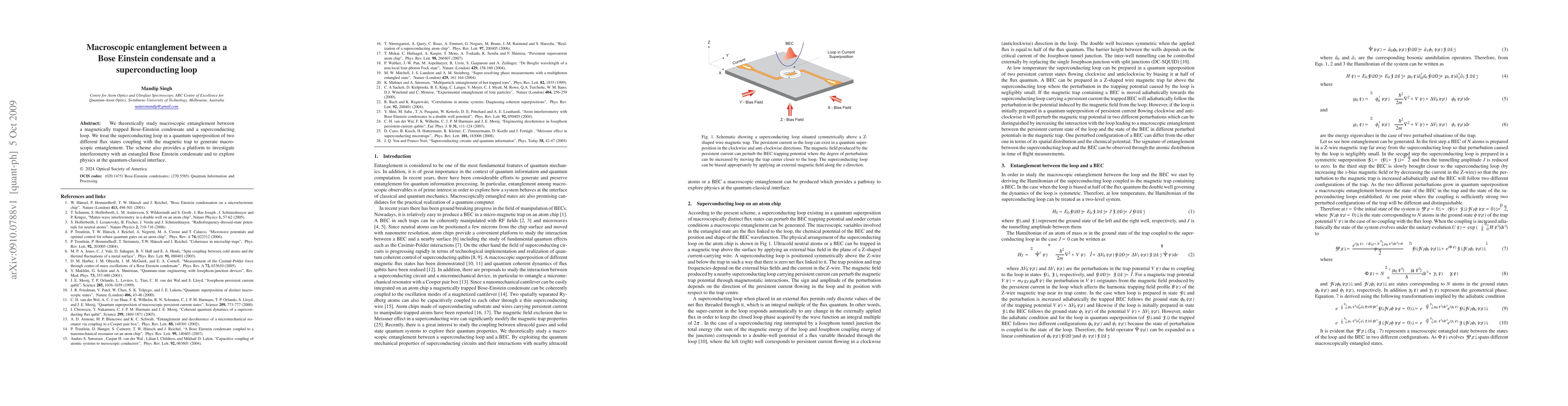 This paper explores the theoretical generation of macroscopic entanglement between a Bose-Einstein condensate and a superconducting loop in a quantum superposition of flux states, providing a platform for interferometry and quantum-classical interface studies.