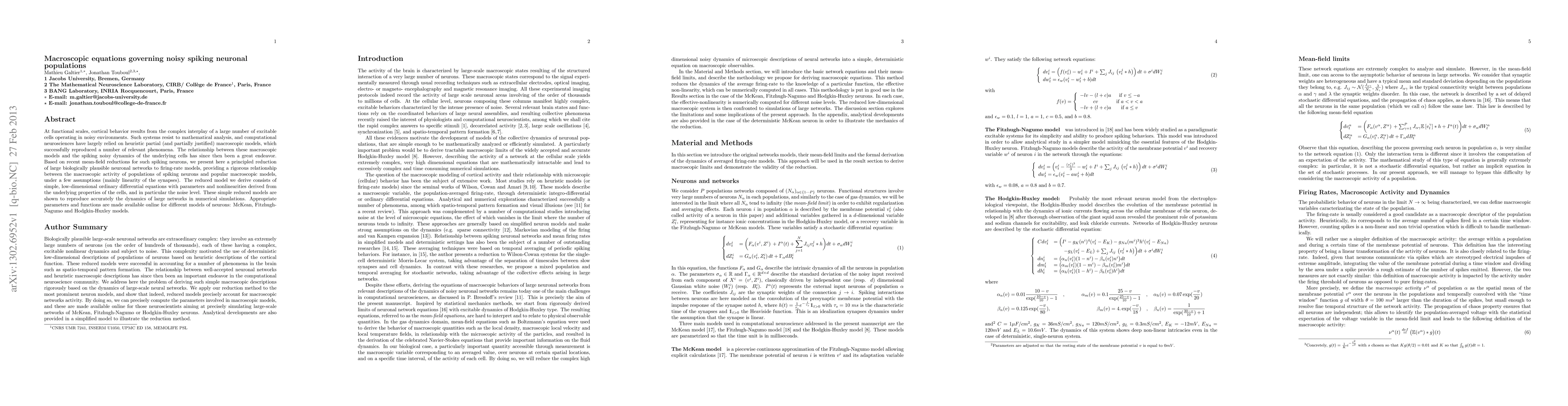 At functional scales, cortical behavior results from the complex interplay of a large number of excitable cells operating in noisy environments. Such systems resist to mathematical analysis, and computational neurosciences have largely relied on heuristic partial (and partially justified) macroscopic models, which successfully reproduced a number of relevant phenomena. The relationship between these macroscopic models and the spiking noisy dynamics of the underlying cells has since then been a great endeavor. Based on recent mean-field reductions for such spiking neurons, we present here {a principled reduction of large biologically plausible neuronal networks to firing-rate models, providing a rigorous} relationship between the macroscopic activity of populations of spiking neurons and popular macroscopic models, under a few assumptions (mainly linearity of the synapses). {The reduced model we derive consists of simple, low-dimensional ordinary differential equations with} parameters and {nonlinearities derived from} the underlying properties of the cells, and in particular the noise level. {These simple reduced models are shown to reproduce accurately the dynamics of large networks in numerical simulations}. Appropriate parameters and functions are made available {online} for different models of neurons: McKean, Fitzhugh-Nagumo and Hodgkin-Huxley models.