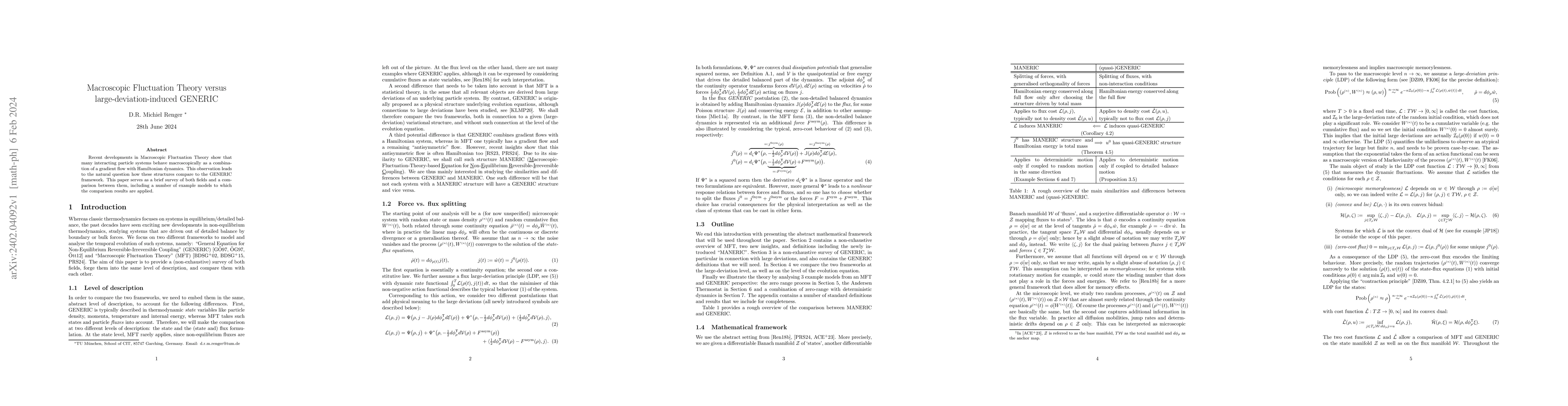 Recent developments in Macroscopic Fluctuation Theory show that many interacting particle systems behave macroscopically as a combination of a gradient flow with Hamiltonian dynamics. This observation leads to the natural question how these structures compare to the GENERIC framework. This paper serves as a brief survey of both fields and a comparison between them, including a number of example models to which the comparison results are applied.