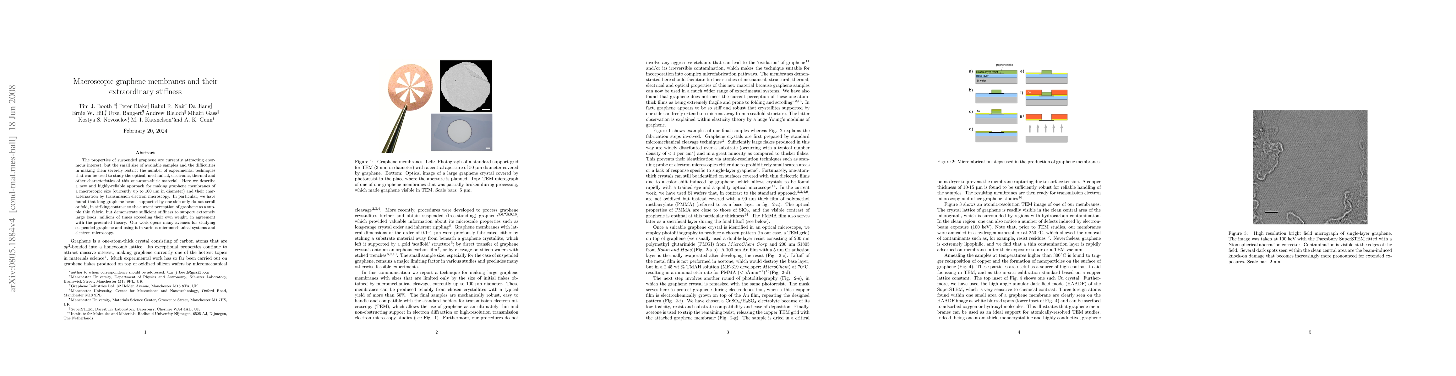 The properties of suspended graphene are currently attracting enormous interest, but the small size of available samples and the difficulties in making them severely restrict the number of experimental techniques that can be used to study the optical, mechanical, electronic, thermal and other characteristics of this one-atom-thick material. Here we describe a new and highly-reliable approach for making graphene membranes of a macroscopic size (currently up to 100 microns in diameter) and their characterization by transmission electron microscopy. In particular, we have found that long graphene beams supported by one side only do not scroll or fold, in striking contrast to the current perception of graphene as a supple thin fabric, but demonstrate sufficient stiffness to support extremely large loads, millions of times exceeding their own weight, in agreement with the presented theory. Our work opens many avenues for studying suspended graphene and using it in various micromechanical systems and electron microscopy.