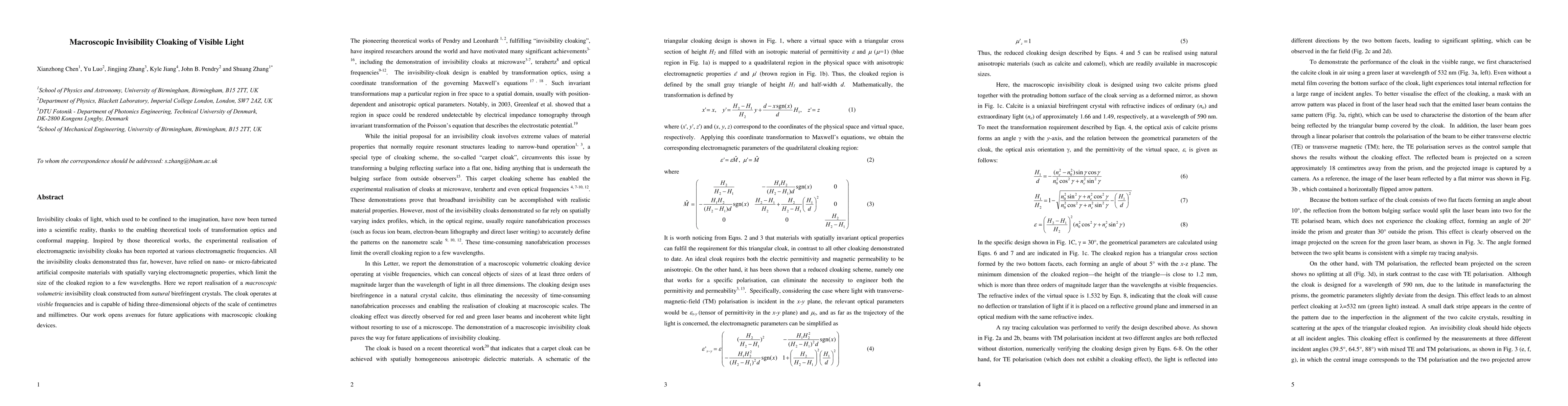 Researchers have developed a macroscopic invisibility cloak using natural birefringent crystals that operates at visible light frequencies, successfully hiding objects of centimetre to millimetre scale. This advancement expands potential applications beyond current nanoscale cloaks.