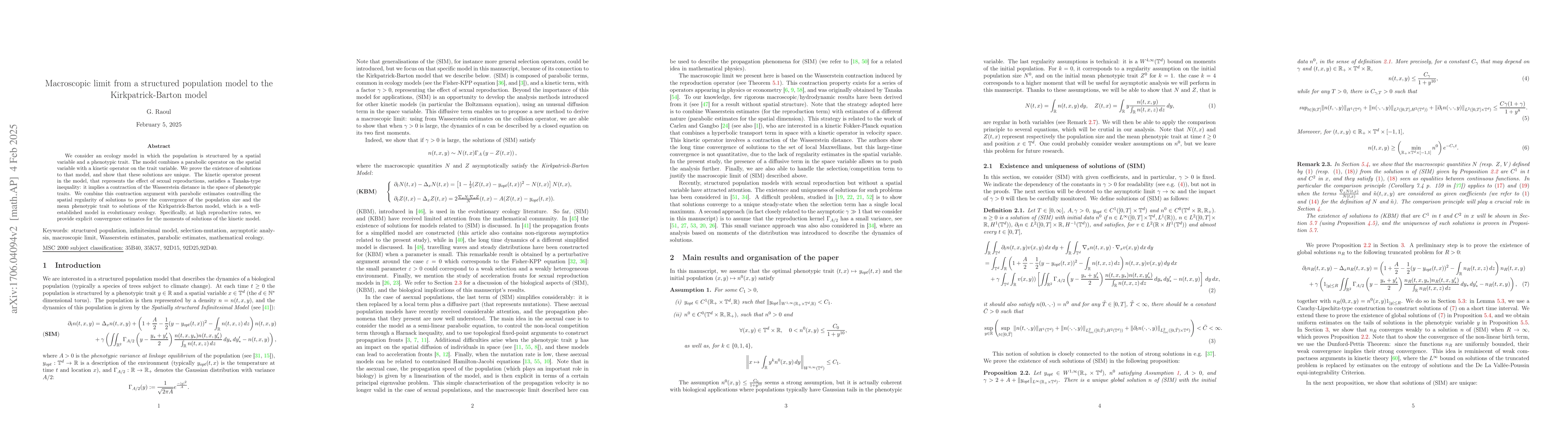 A mathematical model shows that when a population's spatial structure and genetic variation evolve together, they can converge to the Kirkpatrick-Barton model, which describes ecological and evolutionary patterns under certain conditions.