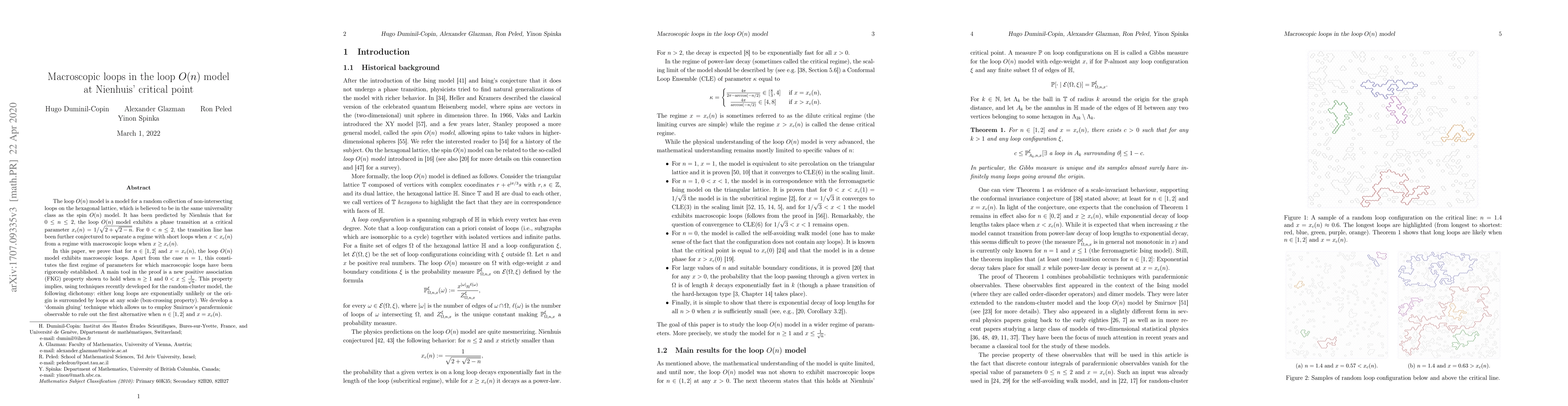 universality class as the spin $O(n)$ model. It has been predicted by Nienhuis
