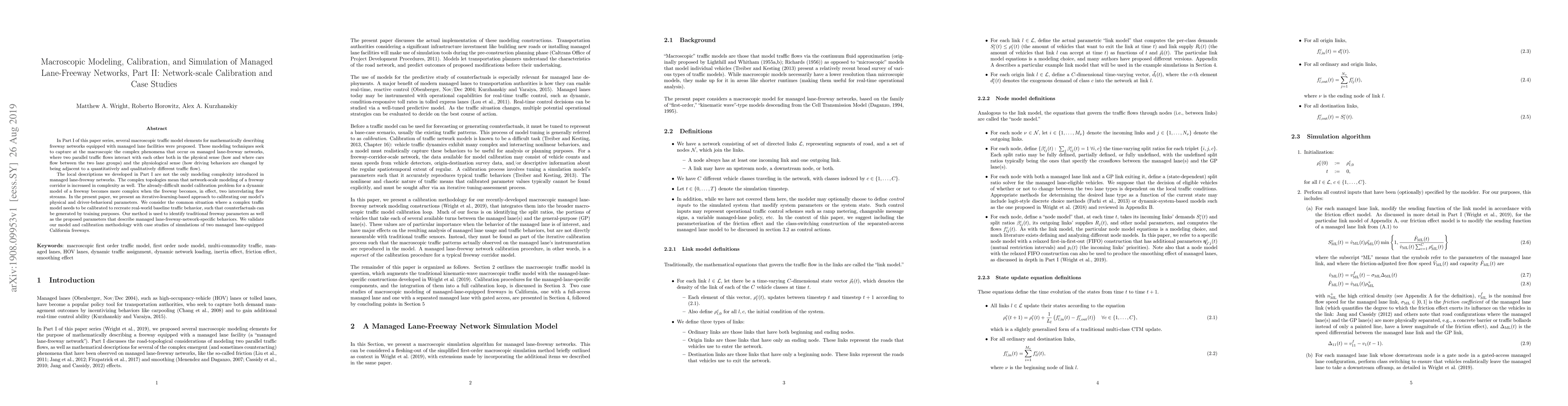 In Part I of this paper series, several macroscopic traffic model elements for mathematically describing freeway networks equipped with managed lane facilities were proposed. These modeling techniques seek to capture at the macroscopic the complex phenomena that occur on managed lane-freeway networks, where two parallel traffic flows interact with each other both in the physical sense (how and where cars flow between the two lane groups) and the physiological sense (how driving behaviors are changed by being adjacent to a quantitatively and qualitatively different traffic flow). The local descriptions we developed in Part I are not the only modeling complexity introduced in managed lane-freeway networks. The complex topologies mean that network-scale modeling of a freeway corridor is increased in complexity as well. The already-difficult model calibration problem for a dynamic model of a freeway becomes more complex when the freeway becomes, in effect, two interrelating flow streams. In the present paper, we present an iterative-learning-based approach to calibrating our model's physical and driver-behavioral parameters. We consider the common situation where a complex traffic model needs to be calibrated to recreate real-world baseline traffic behavior, such that counterfactuals can be generated by training purposes. Our method is used to identify traditional freeway parameters as well as the proposed parameters that describe managed lane-freeway-network-specific behaviors. We validate our model and calibration methodology with case studies of simulations of two managed lane-equipped California freeways.