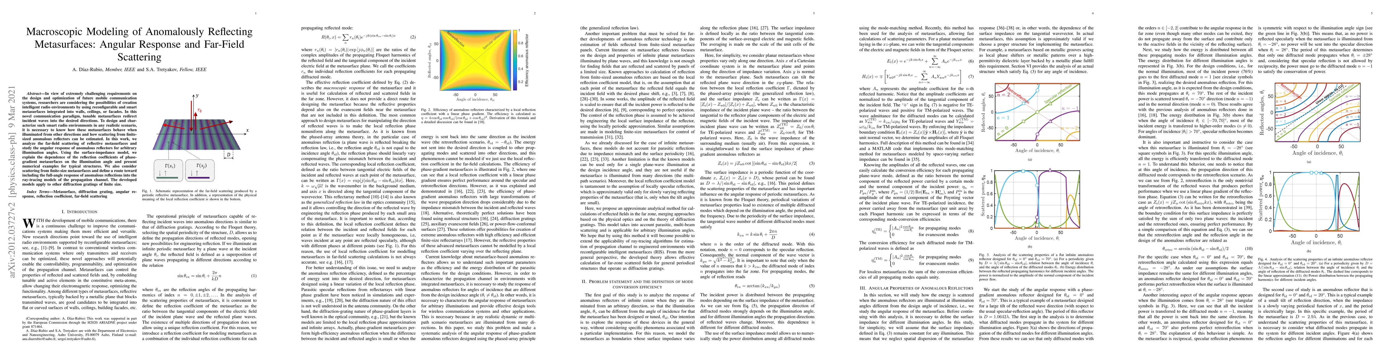 In view of extremely challenging requirements on design and optimization of future mobile communication systems, researchers are considering possibilities of creation intelligent radio environments by using reconfigurable and smart metasurfaces integrated into walls, ceilings, or facades. In this novel communication paradigm, tunable metasurfaces redirect incident waves into the desired directions. In order to design and characterize such smart radio environments in any realistic scenario, it is necessary to know how these metasurfaces behave when illuminated from other directions and how scattering from finite-sized anomalous reflectors can be estimated. We study the angular response of anomalous reflectors for arbitrary illumination angles. Using the surface-impedance model, we explain the dependence of the reflection coefficients of phase-gradient metasurfaces on the illumination angle and present numerical examples for typical structures. We also consider scattering from finite-size metasurfaces and define a route toward including the full-angle response of anomalous reflections into the ray-tracing models of the propagation channel. The developed models apply to other diffraction gratings of finite size.
