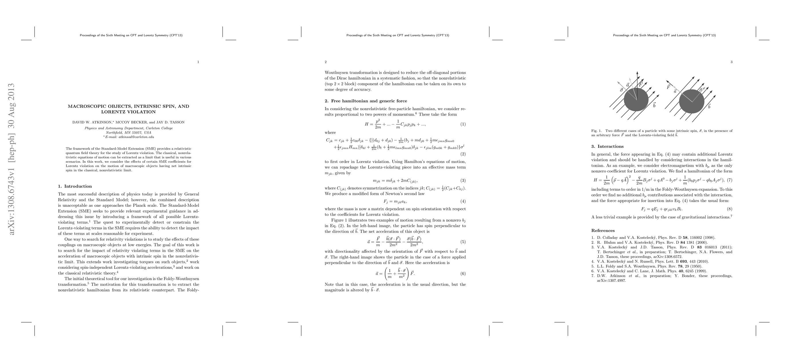 This paper explores the impact of Lorentz violation, as described by the Standard-Model Extension, on the motion of macroscopic objects with intrinsic spin in the classical, nonrelativistic limit. It investigates how specific SME coefficients influence the behavior of such objects.