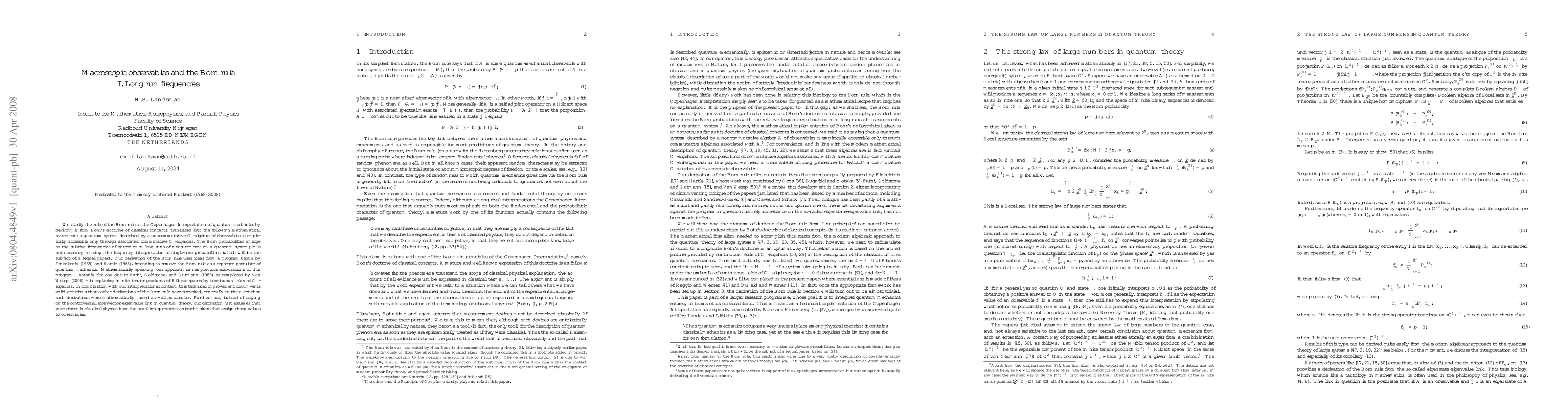 This paper derives the Born rule from Bohr's doctrine of classical concepts, using continuous fields of C*-algebras instead of infinite tensor products, thereby addressing mathematical flaws and circularity criticisms of prior derivations. It emphasizes that Born probabilities emerge as relative frequencies in long-term measurements, without requiring the frequency interpretation of single-case probabilities.