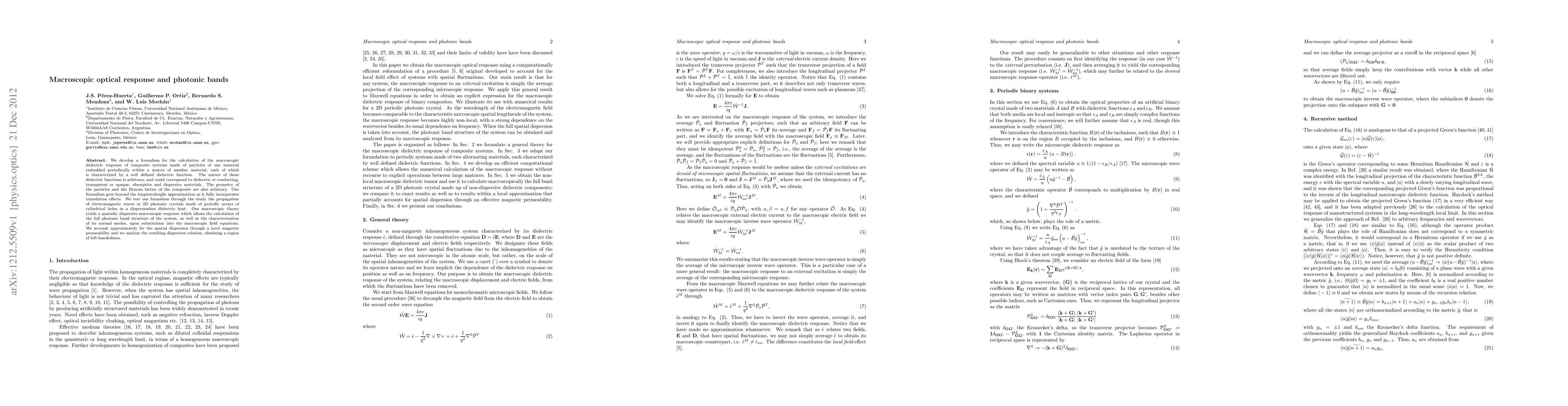 We develop a formalism for the calculation of the macroscopic dielectric response of composite systems made of particles of one material embedded periodically within a matrix of another material, each of which is characterized by a well defined dielectric function. The nature of these dielectric functions is arbitrary, and could correspond to dielectric or conducting, transparent or opaque, absorptive and dispersive materials. The geometry of the particles and the Bravais lattice of the composite are also arbitrary. Our formalism goes beyond the longwavelenght approximation as it fully incorporates retardation effects. We test our formalism through the study the propagation of electromagnetic waves in 2D photonic crystals made of periodic arrays of cylindrical holes in a dispersionless dielectric host. Our macroscopic theory yields a spatially dispersive macroscopic response which allows the calculation of the full photonic band structure of the system, as well as the characterization of its normal modes, upon substitution into the macroscopic field equations. We account approximately for the spatial dispersion through a local magnetic permeability and we analyze the resulting dispersion relation, obtaining a region of left-handedness.