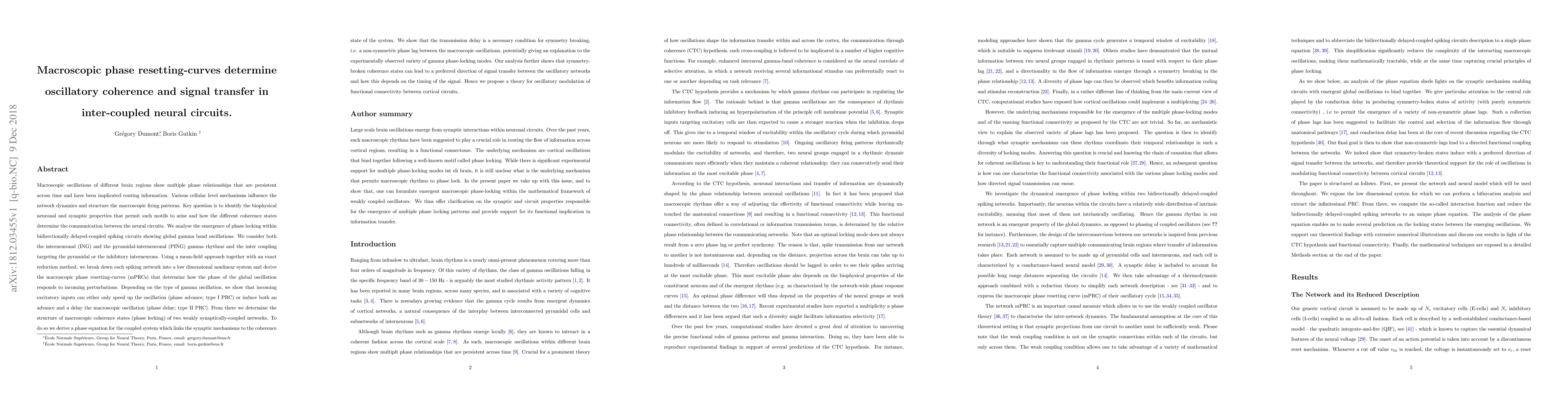 This paper investigates how macroscopic phase resetting-curves (mPRCs) influence oscillatory coherence and signal transfer in inter-coupled neural circuits. It demonstrates that the type of gamma oscillation (ING or PING) and the coupling targeting either pyramidal or inhibitory neurons determine the phase response to perturbations, leading to different coherence states and explaining the variety of observed gamma phase-locking modes.