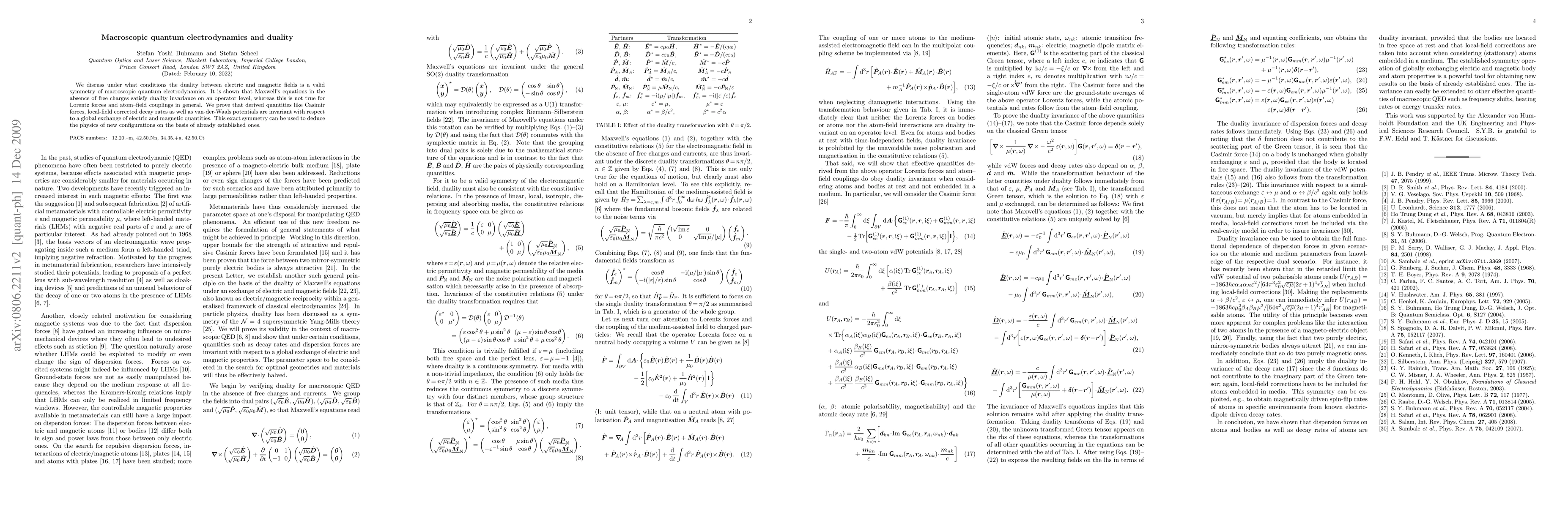 This paper explores the conditions under which duality between electric and magnetic fields holds as a symmetry in macroscopic quantum electrodynamics. It demonstrates that while Maxwell's equations exhibit duality invariance, Lorentz forces and atom-field interactions do not, but derived quantities like Casimir forces remain invariant under this exchange.