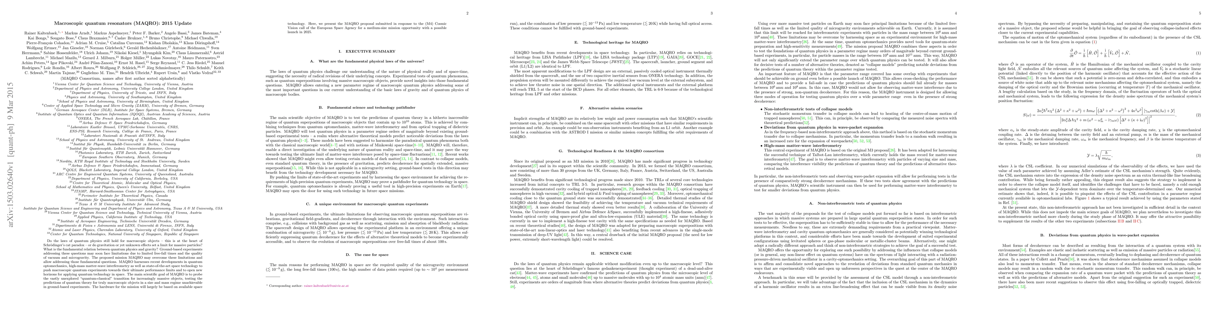 Do the laws of quantum physics still hold for macroscopic objects - this is at the heart of Schr\"odinger's cat paradox - or do gravitation or yet unknown effects set a limit for massive particles? What is the fundamental relation between quantum physics and gravity? Ground-based experiments addressing these questions may soon face limitations due to limited free-fall times and the quality of vacuum and microgravity. The proposed mission MAQRO may overcome these limitations and allow addressing those fundamental questions. MAQRO harnesses recent developments in quantum optomechanics, high-mass matter-wave interferometry as well as state-of-the-art space technology to push macroscopic quantum experiments towards their ultimate performance limits and to open new horizons for applying quantum technology in space. The main scientific goal of MAQRO is to probe the vastly unexplored "quantum-classical" transition for increasingly massive objects, testing the predictions of quantum theory for truly macroscopic objects in a size and mass regime unachievable in ground-based experiments. The hardware for the mission will largely be based on available space technology. Here, we present the MAQRO proposal submitted in response to the (M4) Cosmic Vision call of the European Space Agency for a medium-size mission opportunity with a possible launch in 2025.