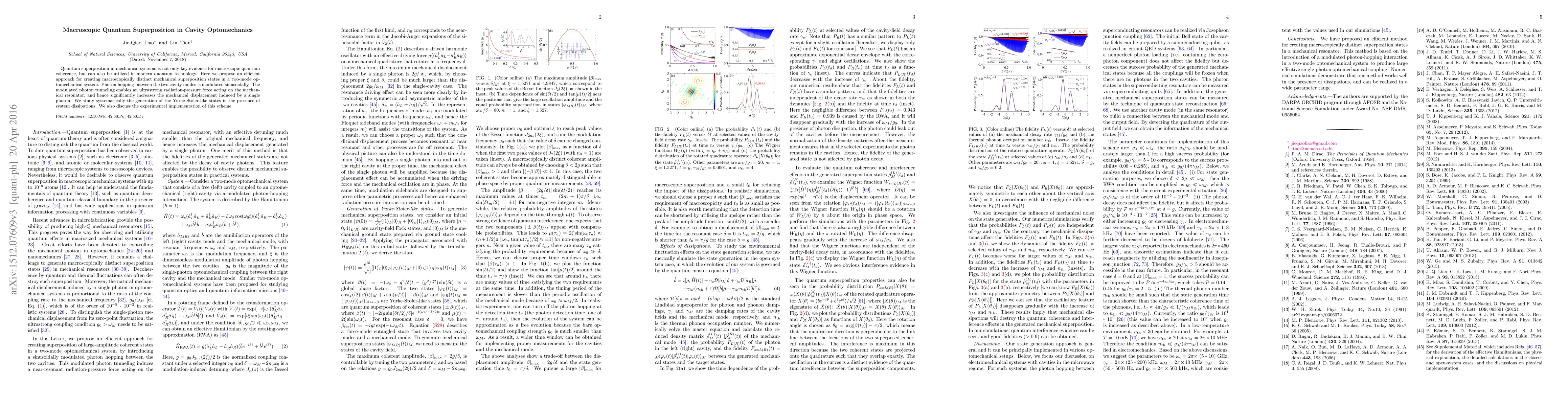 Quantum superposition in mechanical systems is not only key evidence for macroscopic quantum coherence, but can also be utilized in modern quantum technology. Here we propose an efficient approach for creating macroscopically distinct mechanical superposition states in a two-mode optomechanical system. Photon hopping between the two cavity modes is modulated sinusoidally. The modulated photon tunneling enables an ultrastrong radiation-pressure force acting on the mechanical resonator, and hence significantly increases the mechanical displacement induced by a single photon. We study systematically the generation of the Yurke-Stoler-like states in the presence of system dissipations. We also discuss the experimental implementation of this scheme.