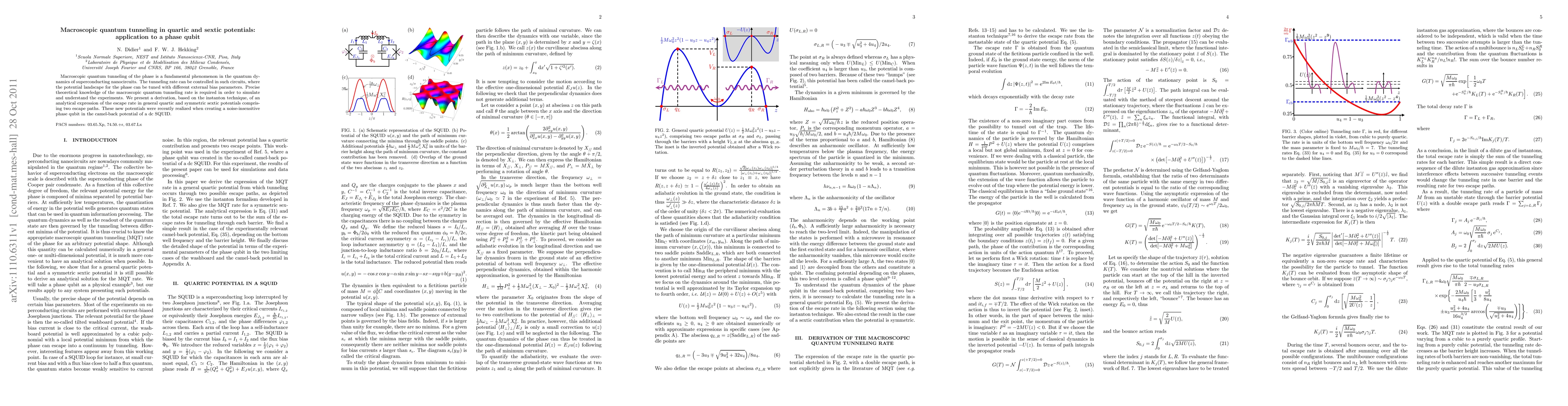 This paper derives an analytical expression for the macroscopic quantum tunneling rate in quartic and sextic potentials using the instanton technique, which is crucial for understanding and simulating the dynamics of superconducting nanocircuits, particularly in noise-insensitive phase qubits. The findings provide a theoretical framework for controlling tunneling rates in these circuits.