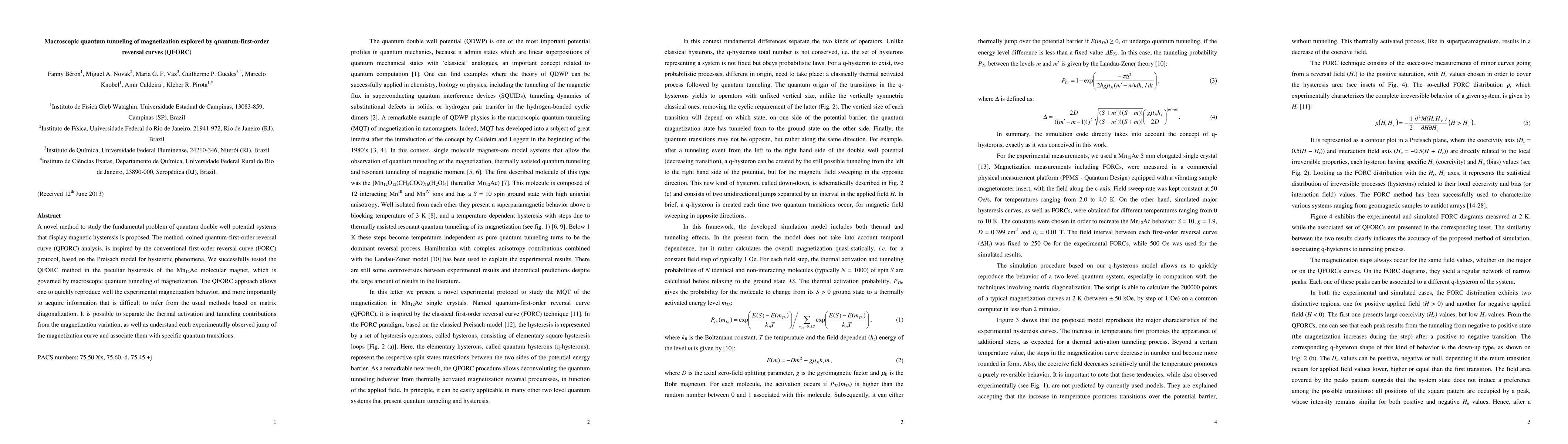 This paper introduces the quantum-first-order reversal curve (QFORC) analysis to study quantum double well potential systems, particularly the macroscopic quantum tunneling of magnetization in Mn12Ac. The QFORC method effectively separates thermal activation and tunneling contributions, providing insights into specific quantum transitions that are difficult to obtain through conventional methods.