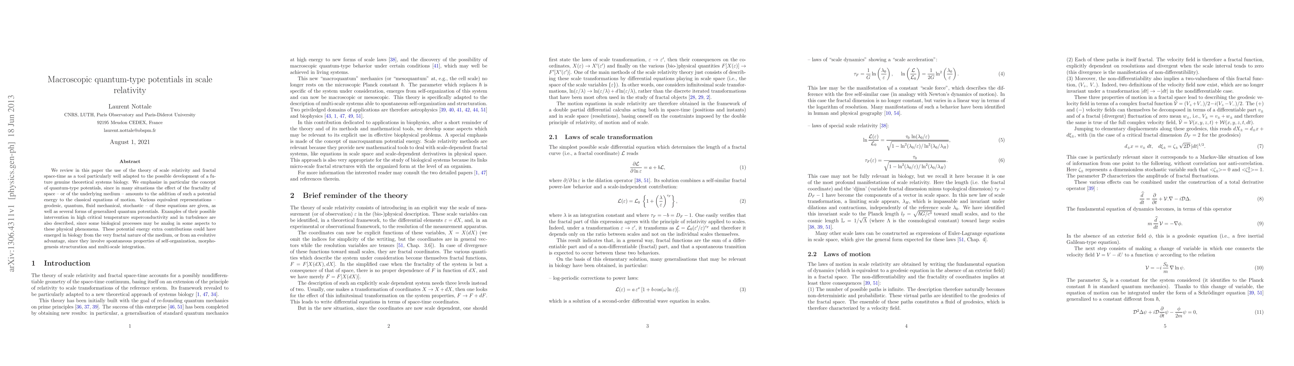 This paper explores the application of scale relativity and fractal space-time to theoretical systems biology, focusing on quantum-type potentials that arise from the fractal nature of space. It discusses various representations of these potentials and their potential roles in phenomena like superconductivity and turbulence, drawing parallels to biological processes.