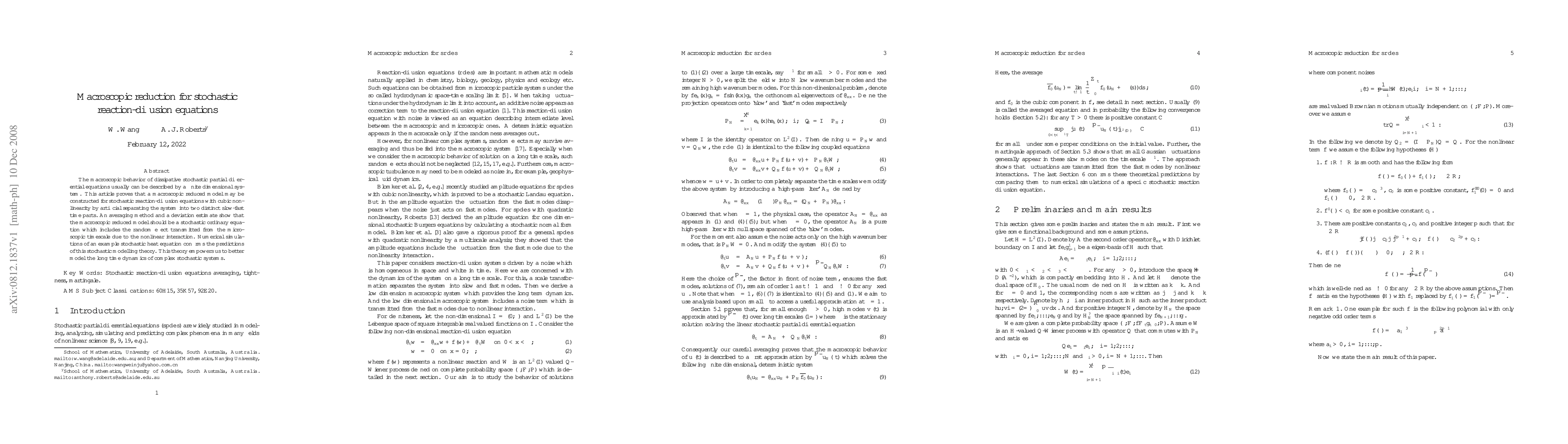 The macroscopic behavior of dissipative stochastic partial differential equations usually can be described by a finite dimensional system. This article proves that a macroscopic reduced model may be constructed for stochastic reaction-diffusion equations with cubic nonlinearity by artificial separating the system into two distinct slow-fast time parts. An averaging method and a deviation estimate show that the macroscopic reduced model should be a stochastic ordinary equation which includes the random effect transmitted from the microscopic timescale due to the nonlinear interaction. Numerical simulations of an example stochastic heat equation confirms the predictions of this stochastic modelling theory. This theory empowers us to better model the long time dynamics of complex stochastic systems.