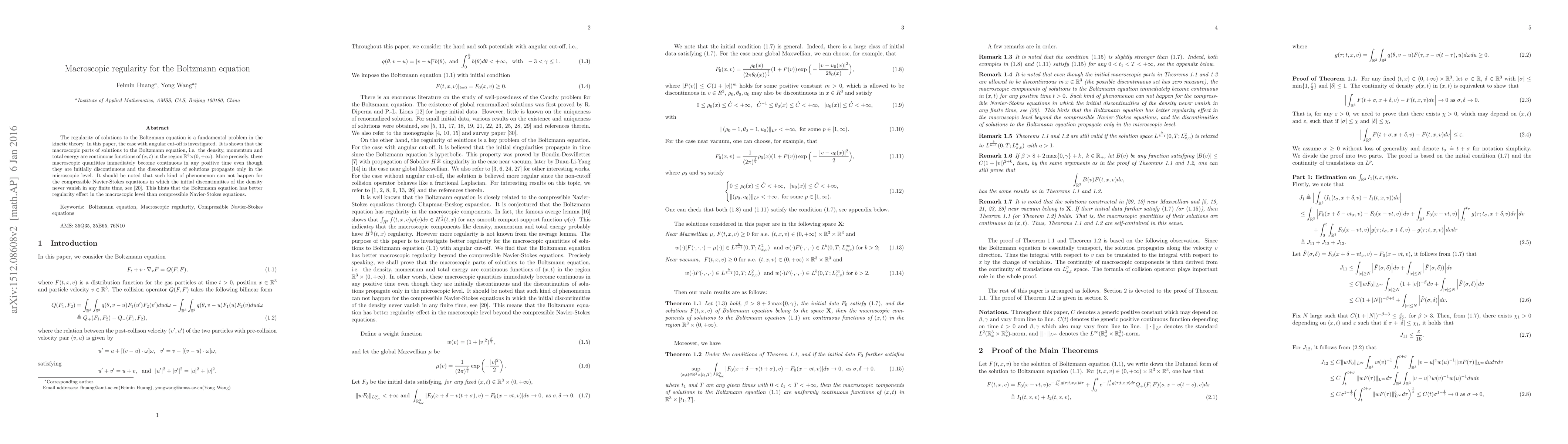 This paper investigates the macroscopic regularity of solutions to the Boltzmann equation with angular cut-off, demonstrating that density, momentum, and total energy become continuous in $\mathbb{R}^3\times(0,+\infty)$ despite initial discontinuities, unlike the compressible Navier-Stokes equations.