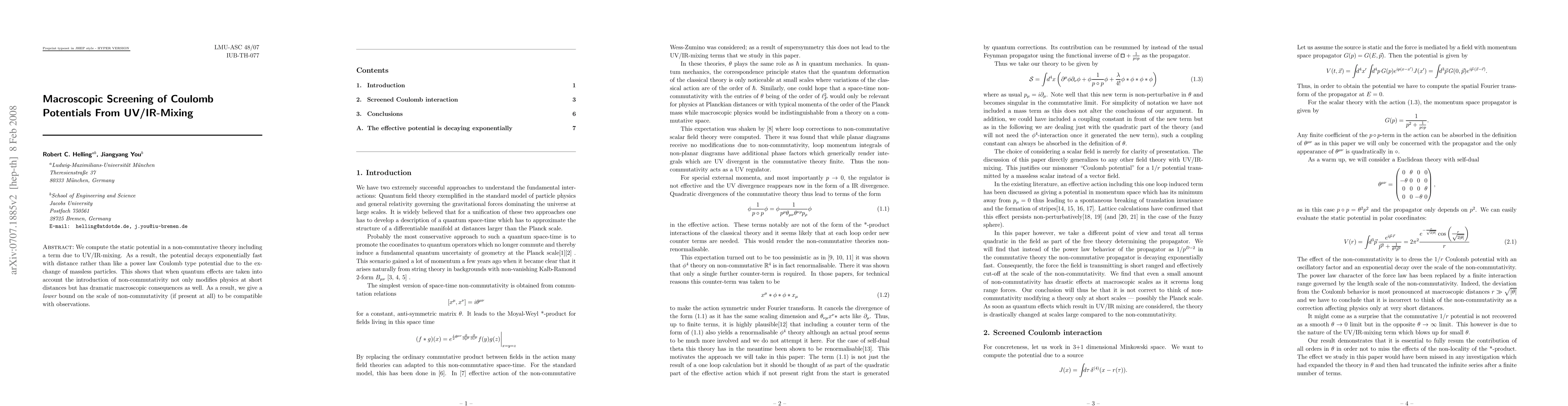 We compute the static potential in a non-commutative theory including a term due to UV/IR-mixing. As a result, the potential decays exponentially fast with distance rather than like a power law Coulomb type potential due to the exchange of massless particles. This shows that when quantum effects are taken into account the introduction of non-commutativity not only modifies physics at short distances but has dramatic macroscopic consequences as well. As a result, we give a lower bound on the scale of non-commutativity (if present at all) to be compatible with observations.