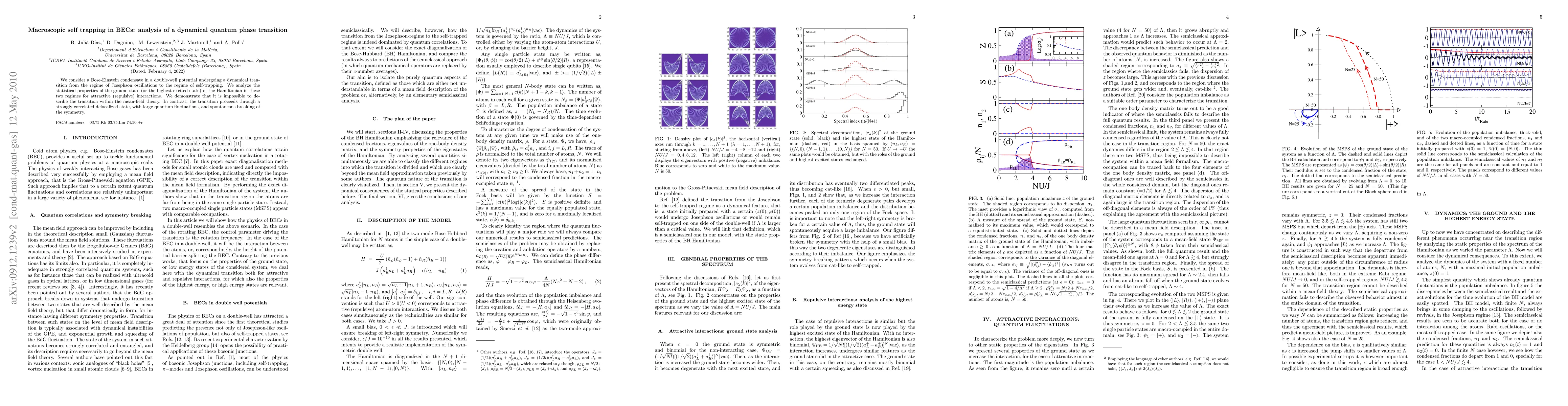We consider a Bose-Einstein condensate in a double-well potential undergoing a dynamical transition from the regime of Josephson oscillations to the regime of self-trapping. We analyze the statistical properties of the ground state (or the highest excited state) of the Hamiltonian in these two regimes for attractive (repulsive) interactions. We demonstrate that it is impossible to describe the transition within the mean-field theory. In contrast, the transition proceeds through a strongly correlated delocalized state, with large quantum fluctuations, and spontaneous breaking of the symmetry.