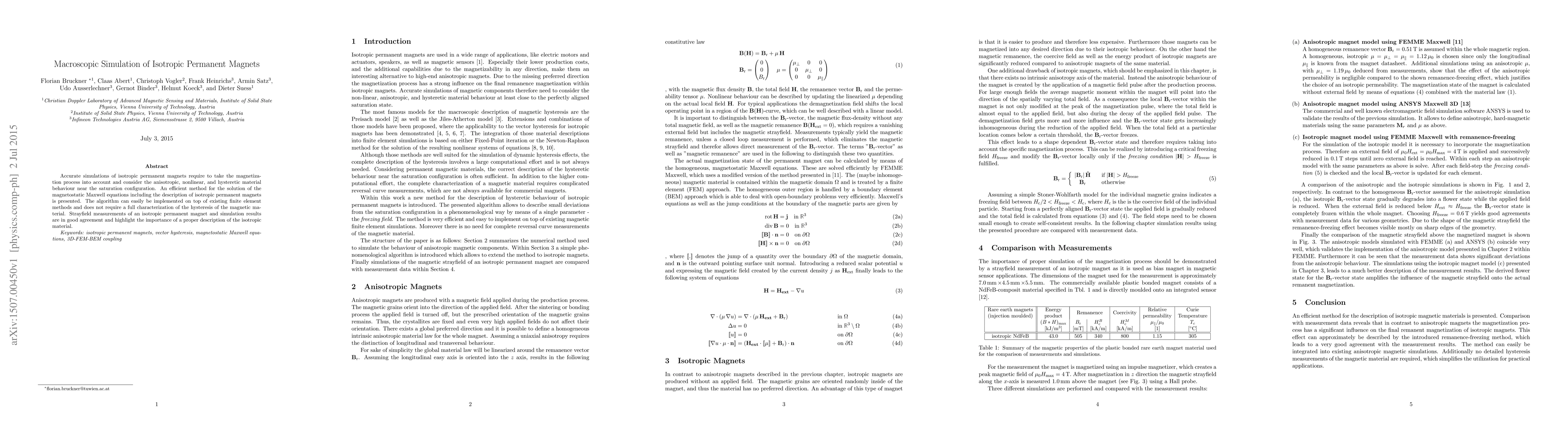 This paper presents an efficient simulation method for isotropic permanent magnets, focusing on the anisotropic, nonlinear, and hysteretic behavior near saturation. The proposed algorithm integrates seamlessly with existing finite element methods and validates its accuracy through good agreement between strayfield measurements and simulation results.