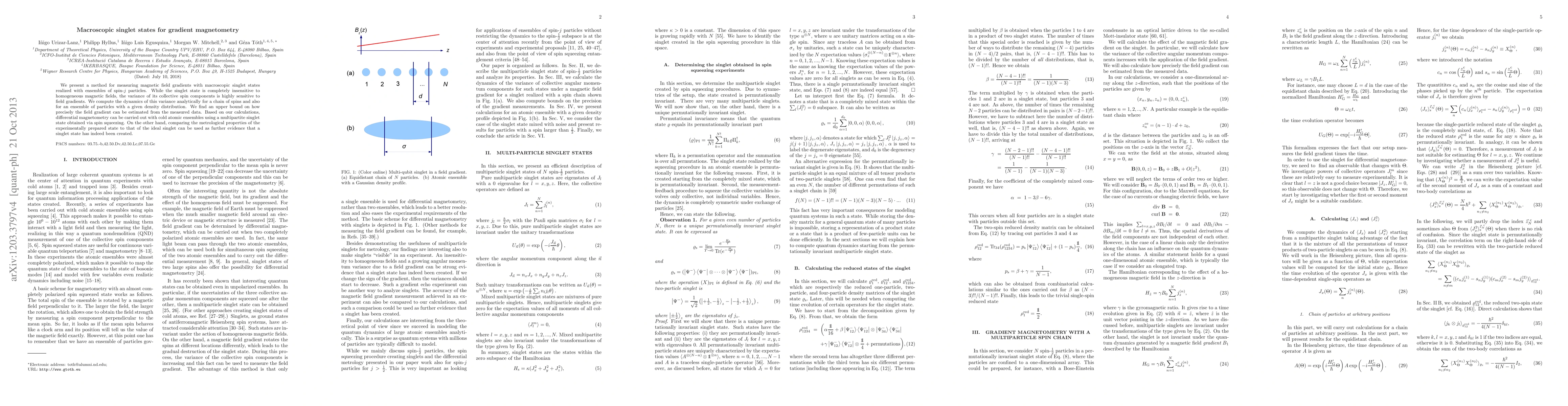 This paper proposes a method for gradient magnetometry using macroscopic singlet states formed by ensembles of spin-j particles, demonstrating sensitivity to magnetic field gradients while being immune to homogeneous fields. The authors analytically compute the variance dynamics and establish an upper bound for gradient estimation precision, suggesting its application in cold atomic ensembles via spin squeezing.